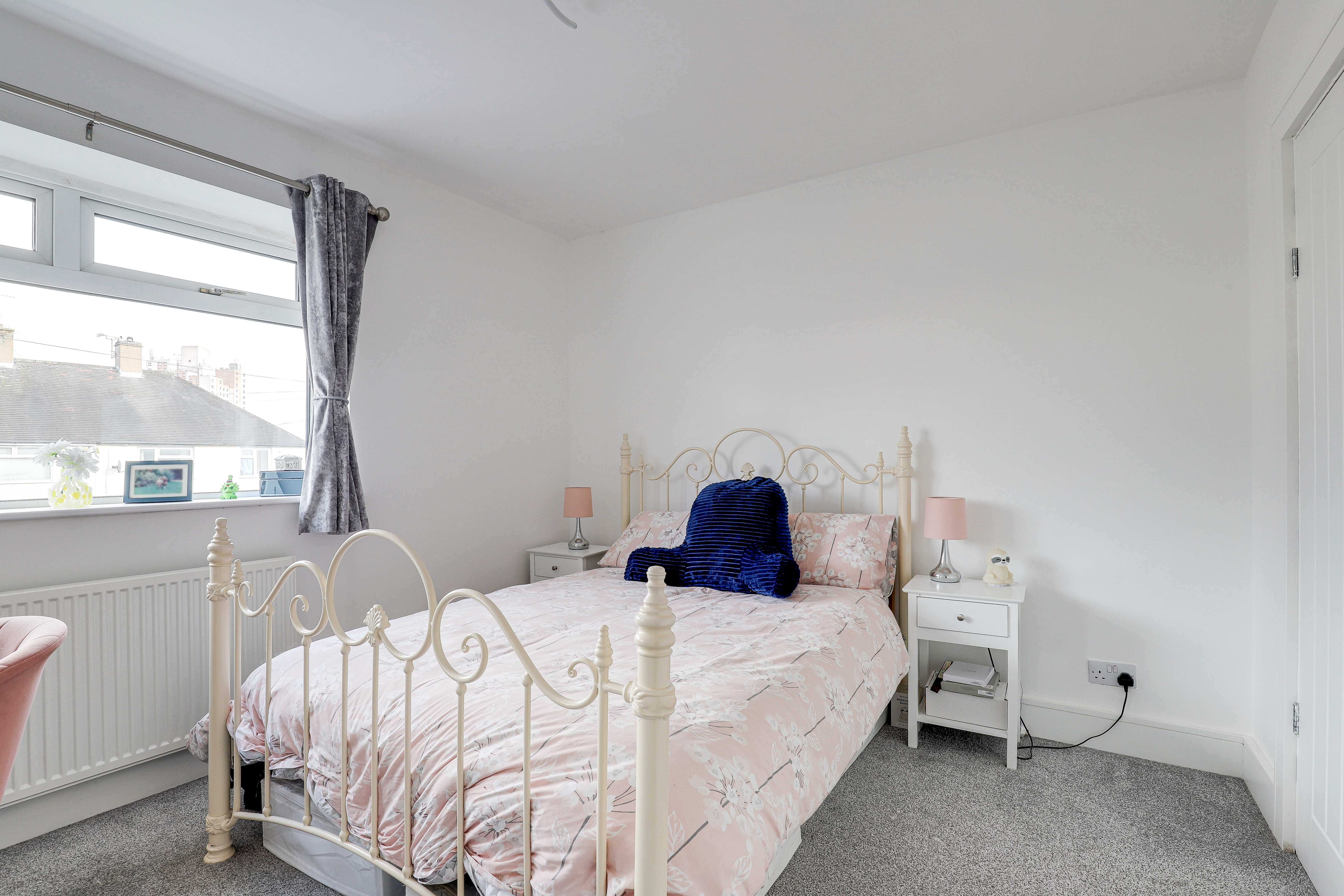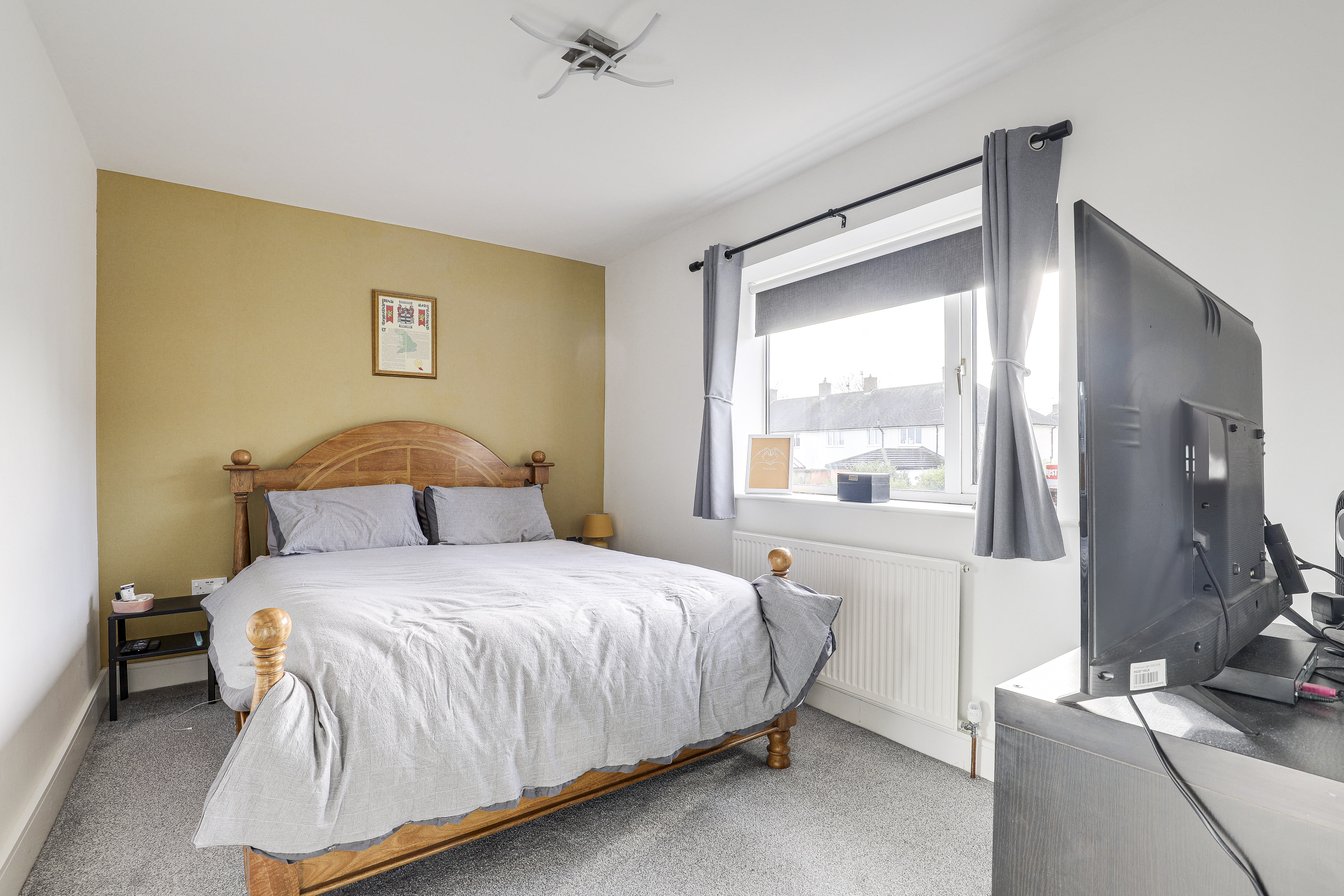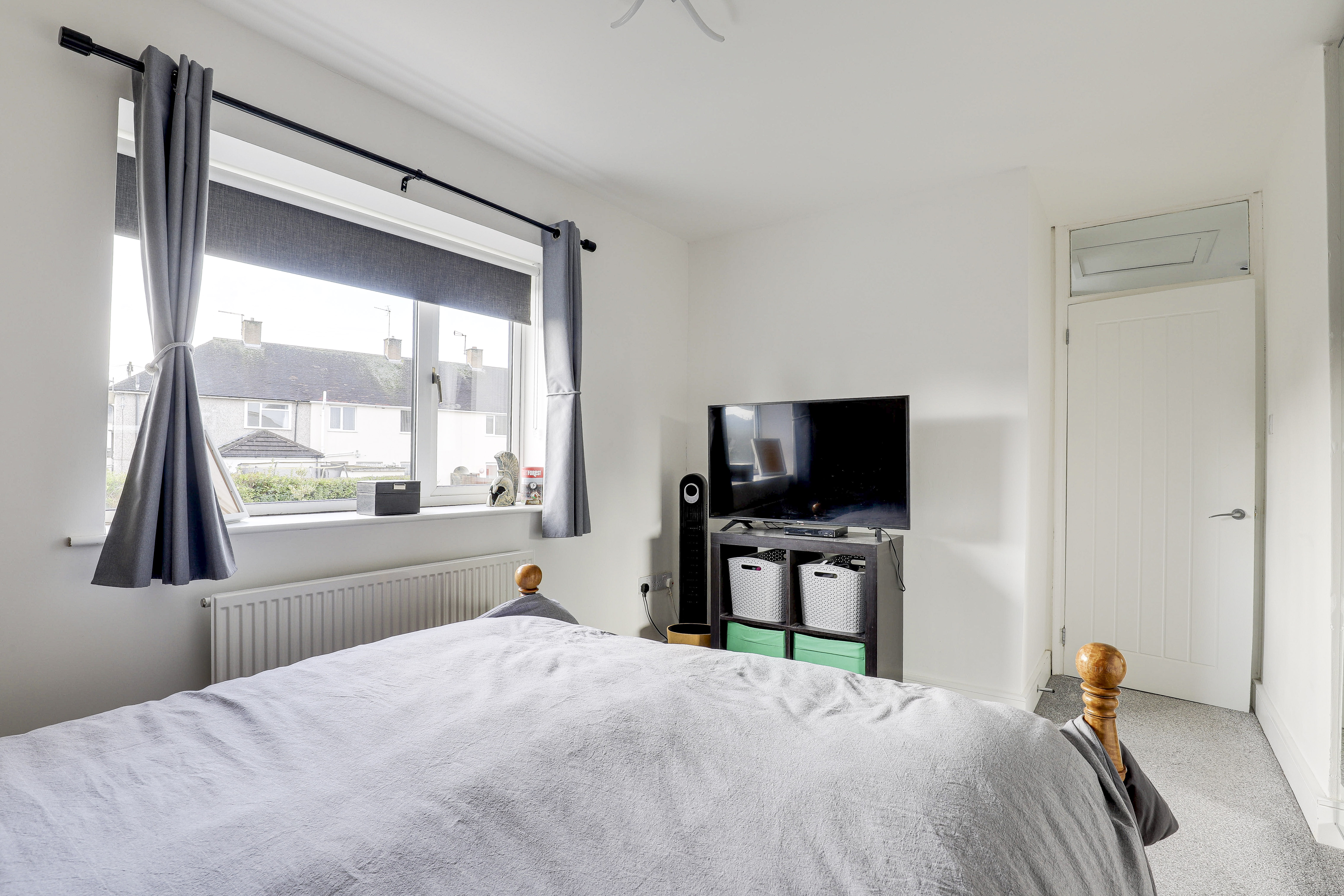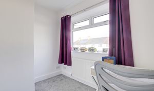 The second bedroom has a UPVC double glazed window to the front elevation, a radiator, an in-built cupboard, and carpeted flooring.