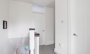 The landing has carpeted flooring, an in-built cupboard, access into the loft, and access to the first floor accommodation.