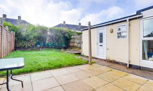 To the rear garden is fully enclosed, featuring a patio area for outdoor dining or relaxing, a lawn for recreation, and panelled fencing, creating a private and family-friendly outdoor space.