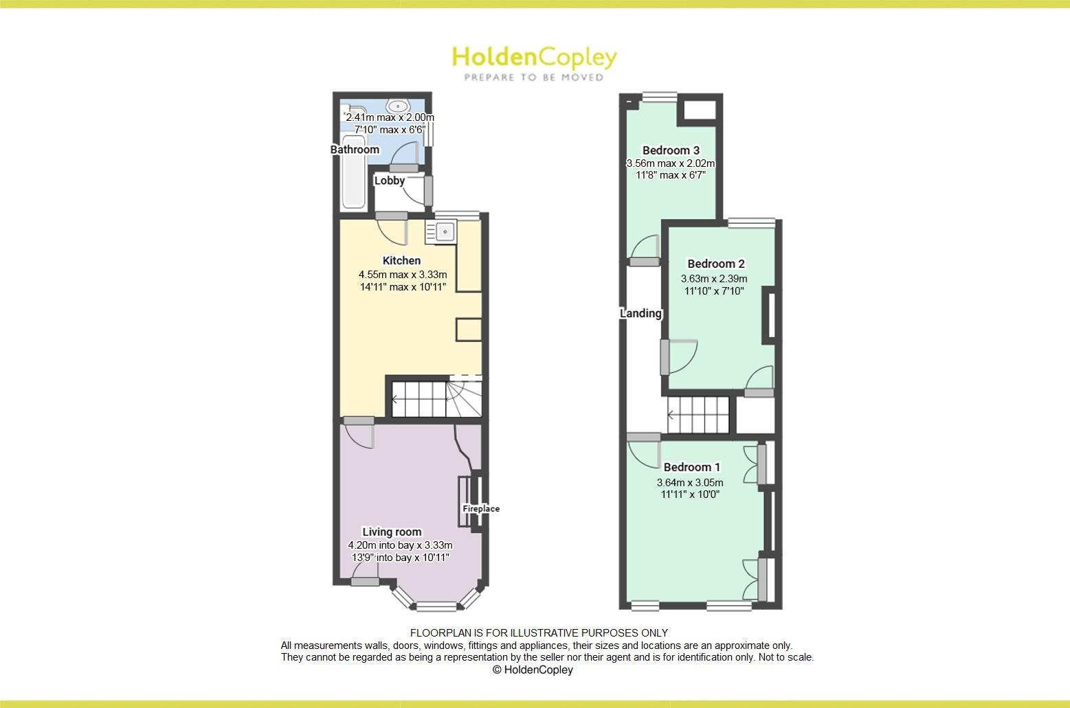 Dimensions: 4.20m into bay x 3.33m (13'9" into bay x 10'11"). The living room has a UPVC double-glazed bay window to the front elevation, carpeted flooring, coving to the ceiling, a radiator, a feature fireplace with a decorative surround, and a single composite door providing access into the accommodation.