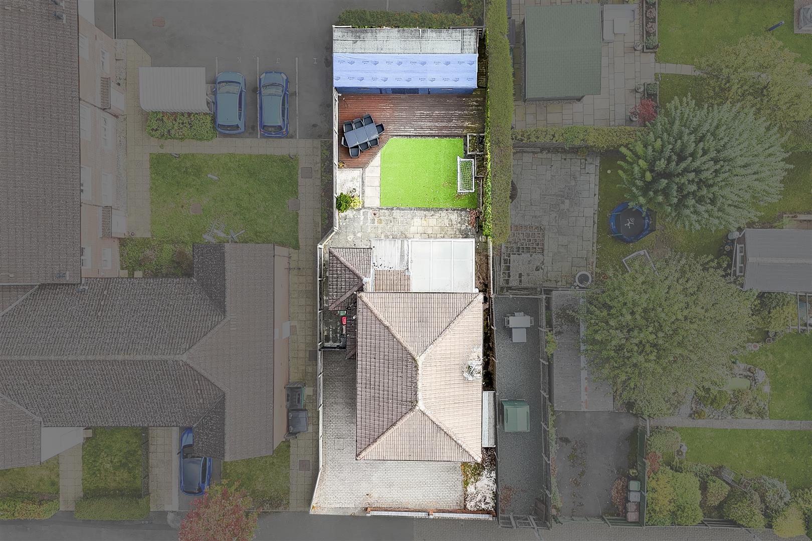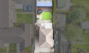 To the front of the property is a block paved driveway providing off-street parking, a shed, gated access to the rear, and boundaries made up of fence panelling and brick wall.