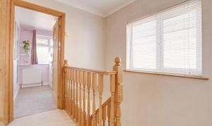 Dimensions: 2.17m x 1.97m (7'1" x 6'5"). The landing has carpeted flooring, a UPVC double-glazed window to the side elevation, coving to the ceiling, access to the loft, and access to the first floor accommodation.