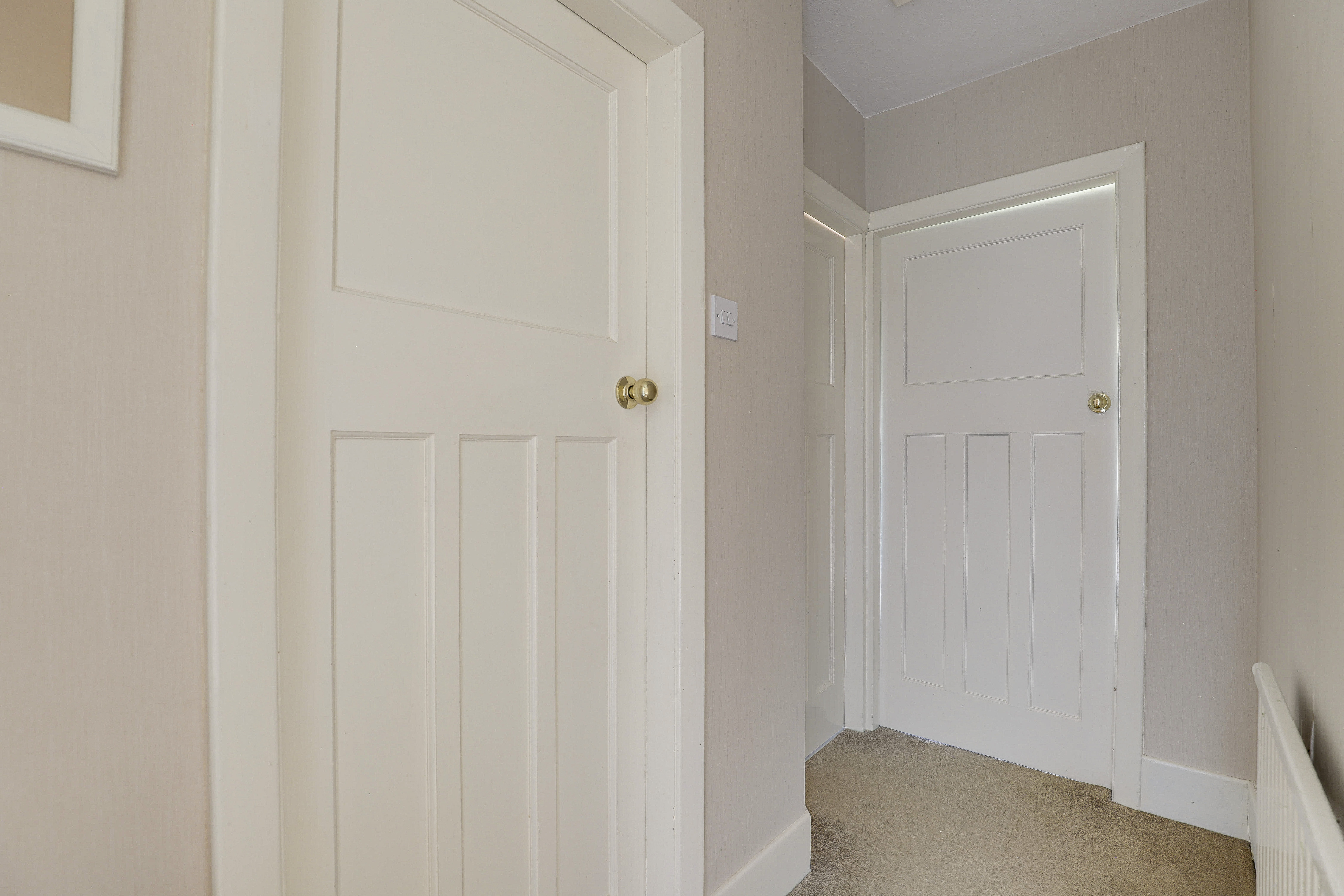 The landing has carpeted flooring, access into the loft, and access to the first floor accommodation.