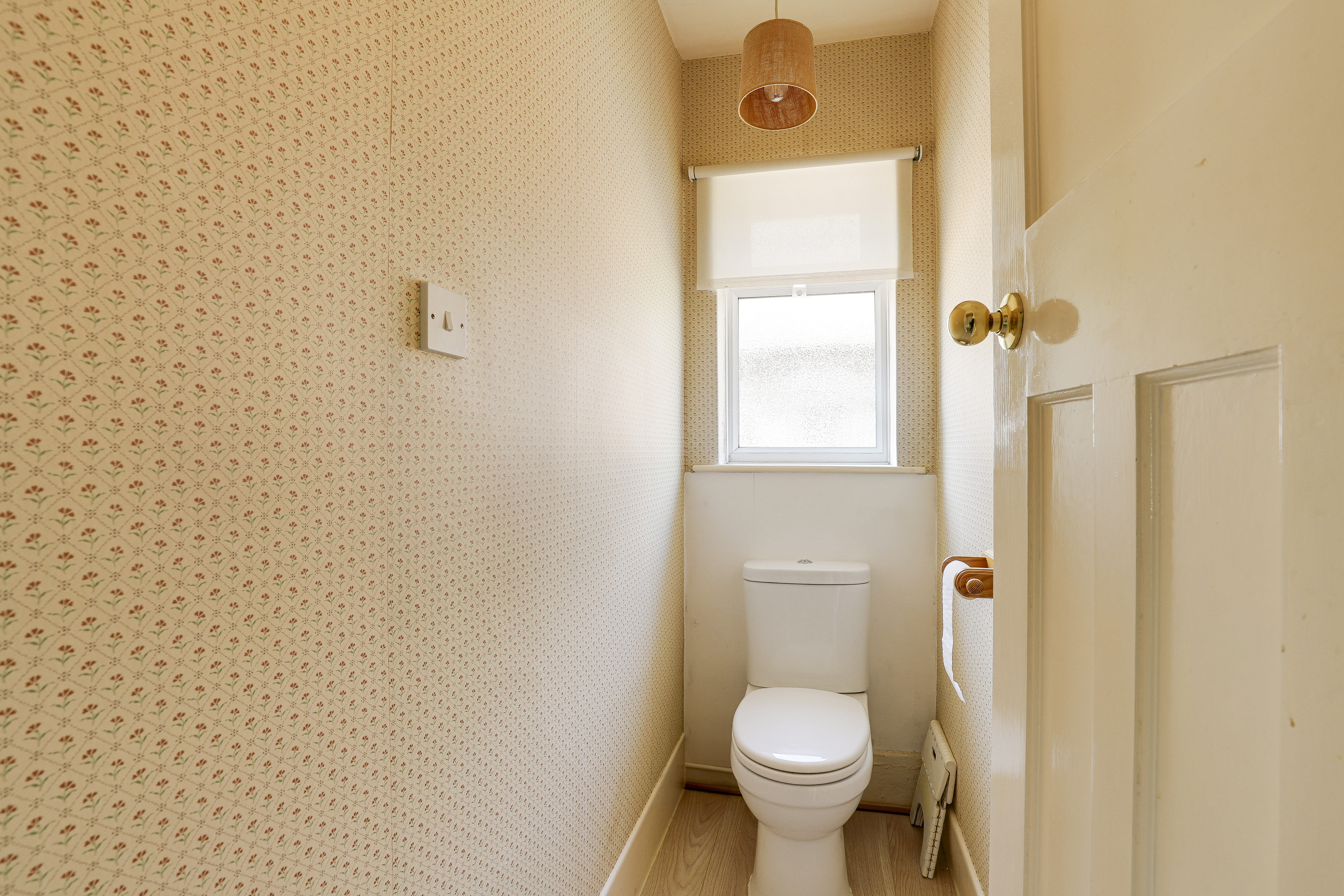 This space has an obscure window to the side elevation, a low level flush W/C, and wood-effect flooring.