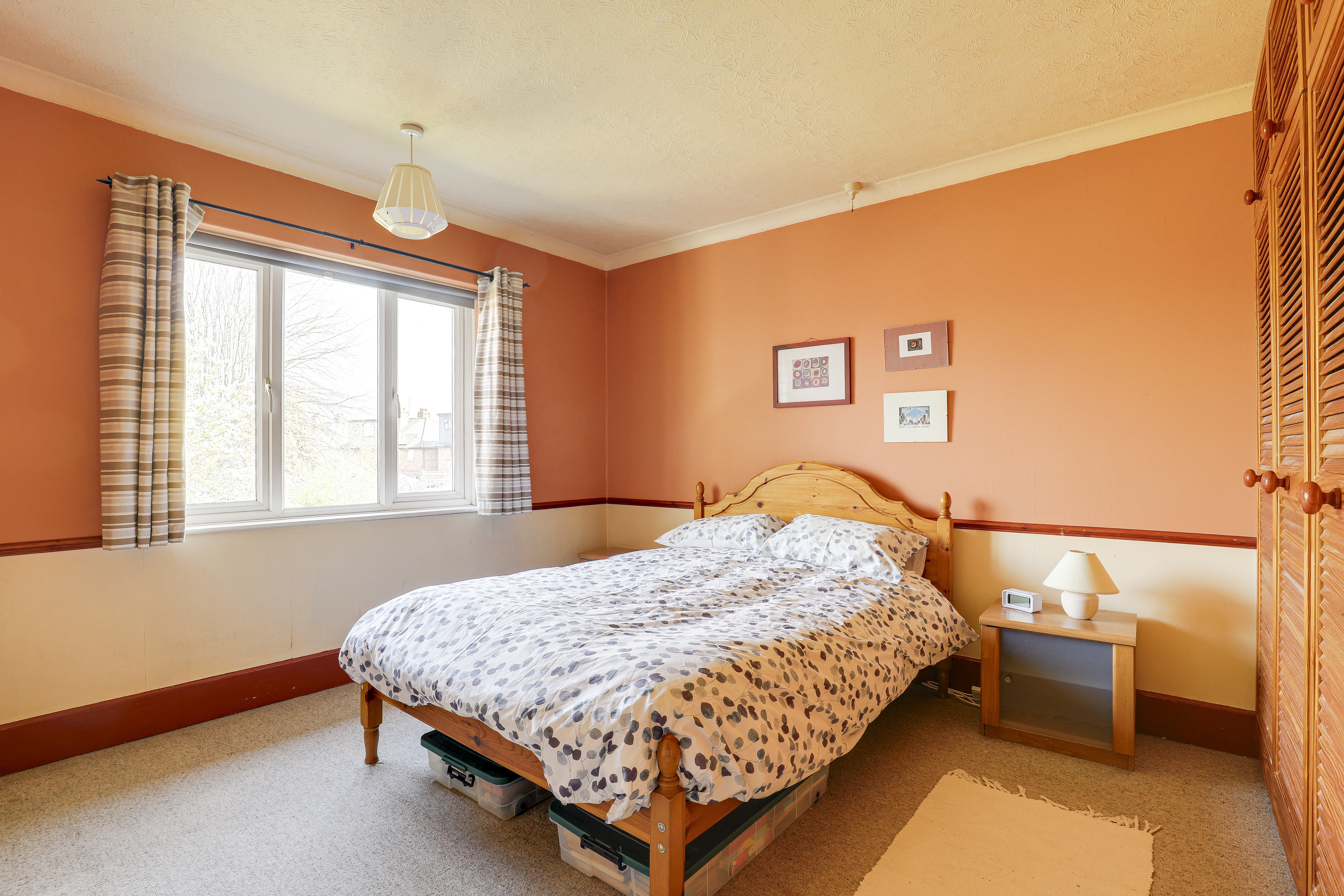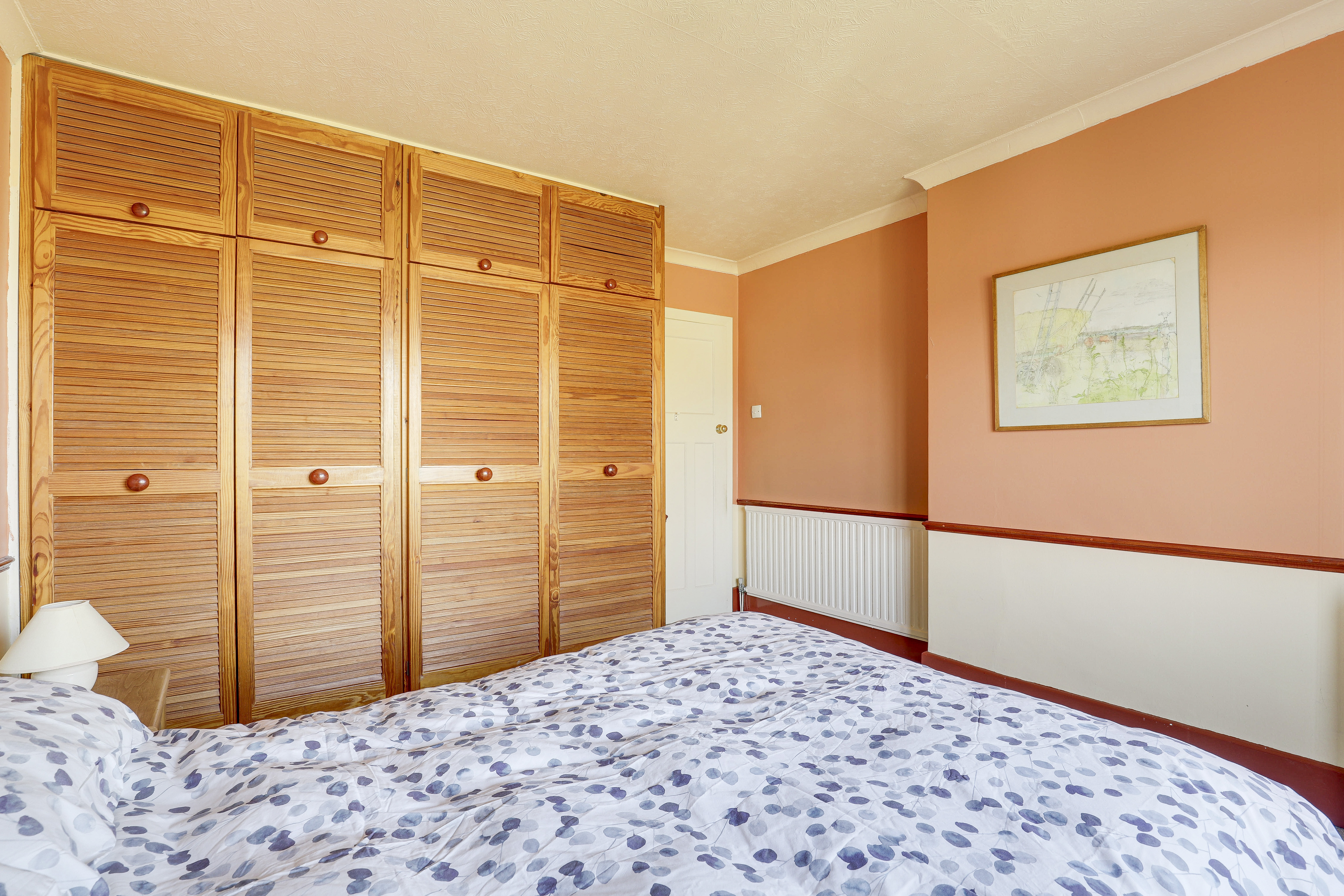 The second bedroom has a window to the rear elevation, a radiator, a dado rail, fitted wardrobes, coving to the ceiling, and carpeted flooring.