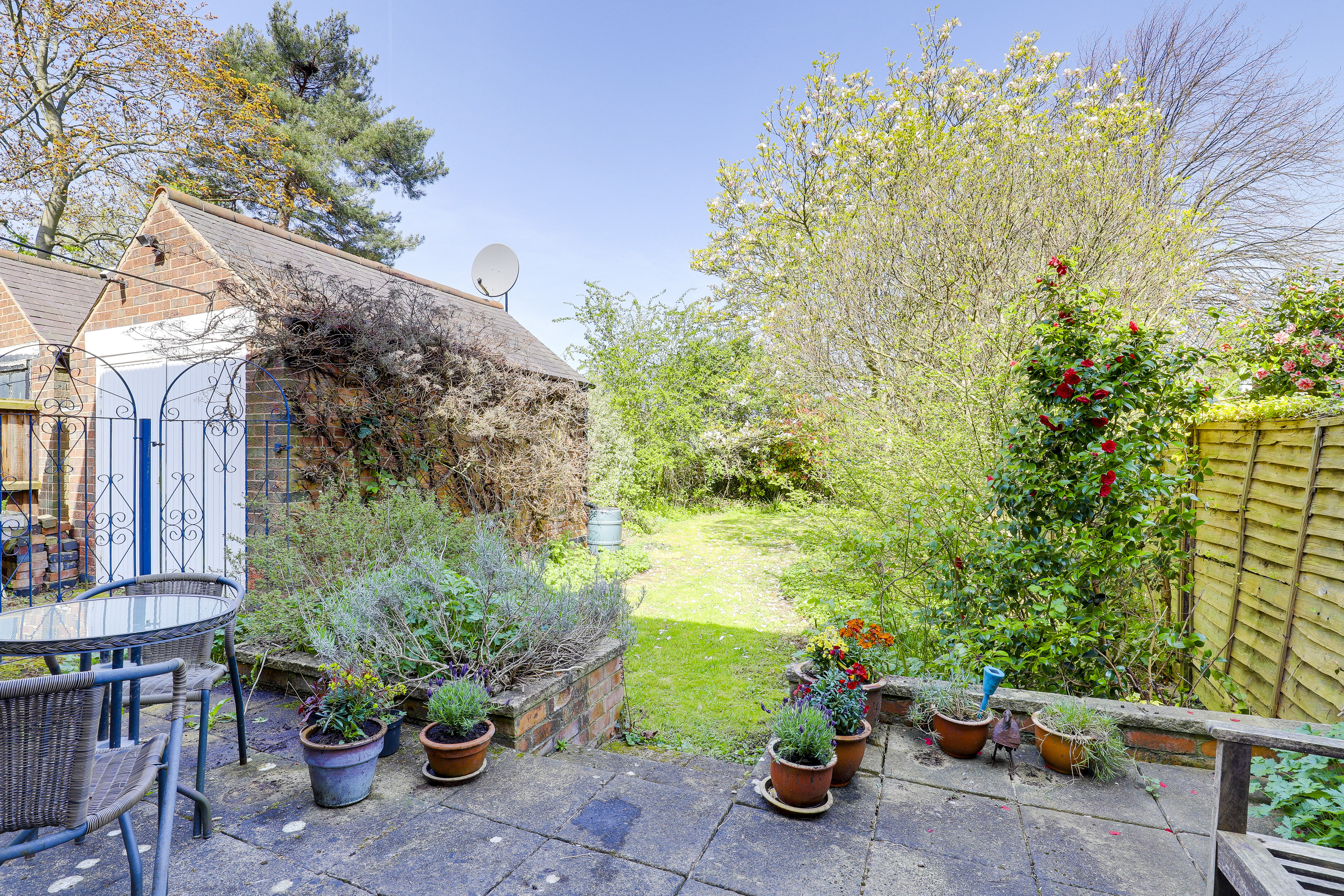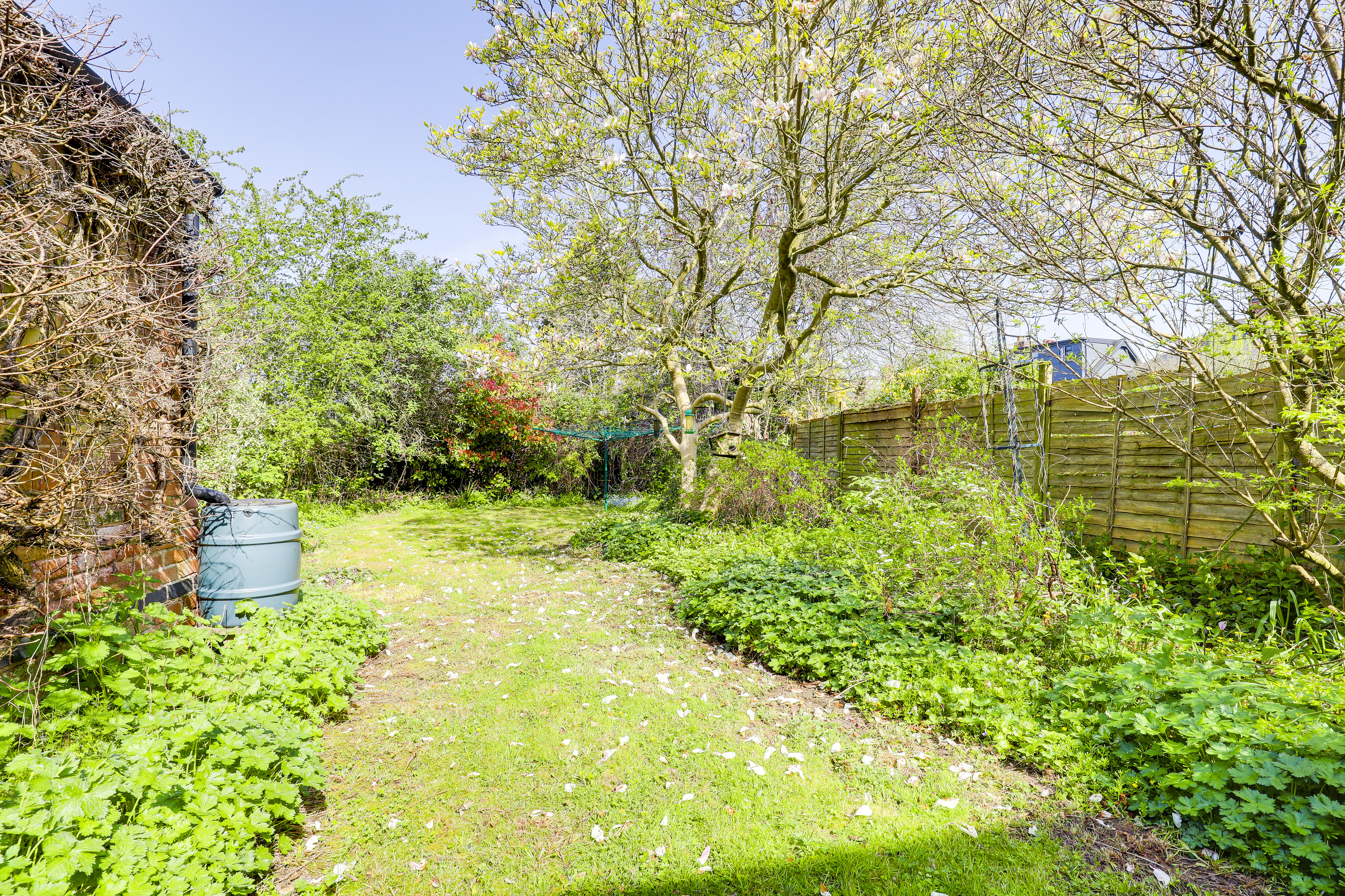 To the rear of the property is an enclosed garden with a lawn, various plants, shrubs, bushes and trees, and a fence panelled boundary.
