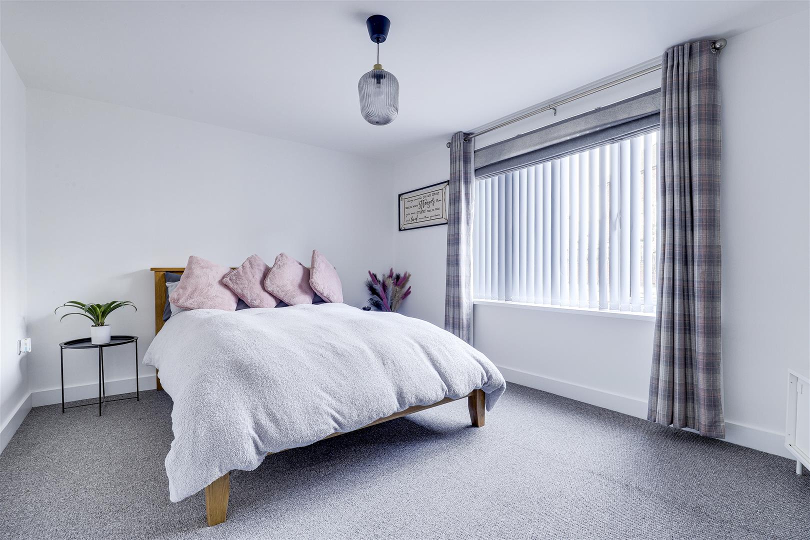 The second bedroom has carpeted flooring, a radiator, and a UPVC double-glazed window to the front elevation.