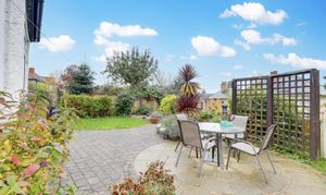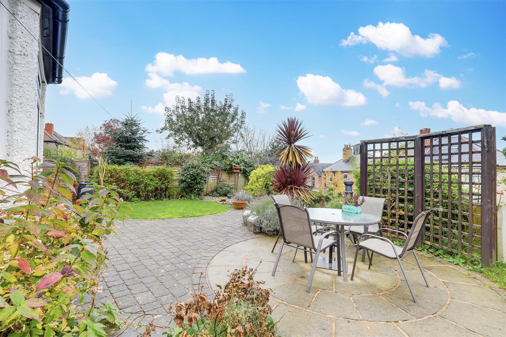 To the rear of the property is a private enclosed garden with a block paved area, two lawns, a range of plants and shrubs, a shed, courtesy lighting and panelled fencing.
