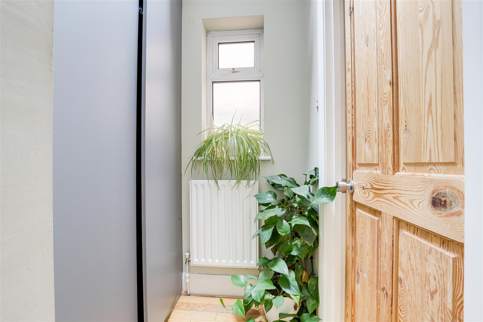 The cloak room has wooden flooring, an in-built wardrobe, a radiator, a Velux window and a UPVC double glazed obscure window to the side elevation.