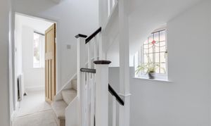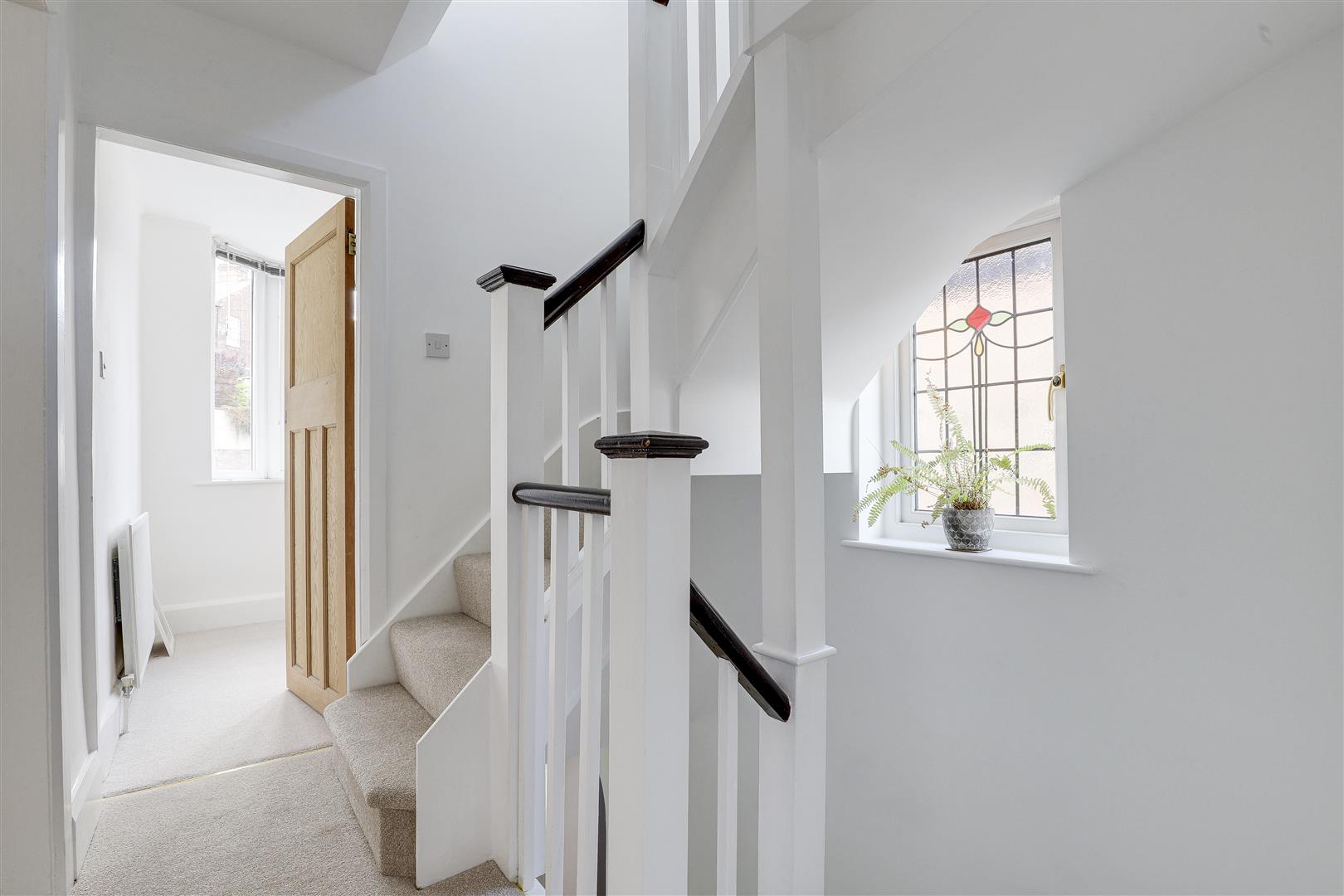 The landing has carpeted flooring, a UPVC double glazed obscure window with a stained glass insert to the side elevation and provides access to the first floor accommodation.