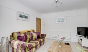 The living room has carpeted flooring, a TV point, a radiator, coving to the ceiling, a picture rail and a UPVC double glazed bay window to the front elevation.