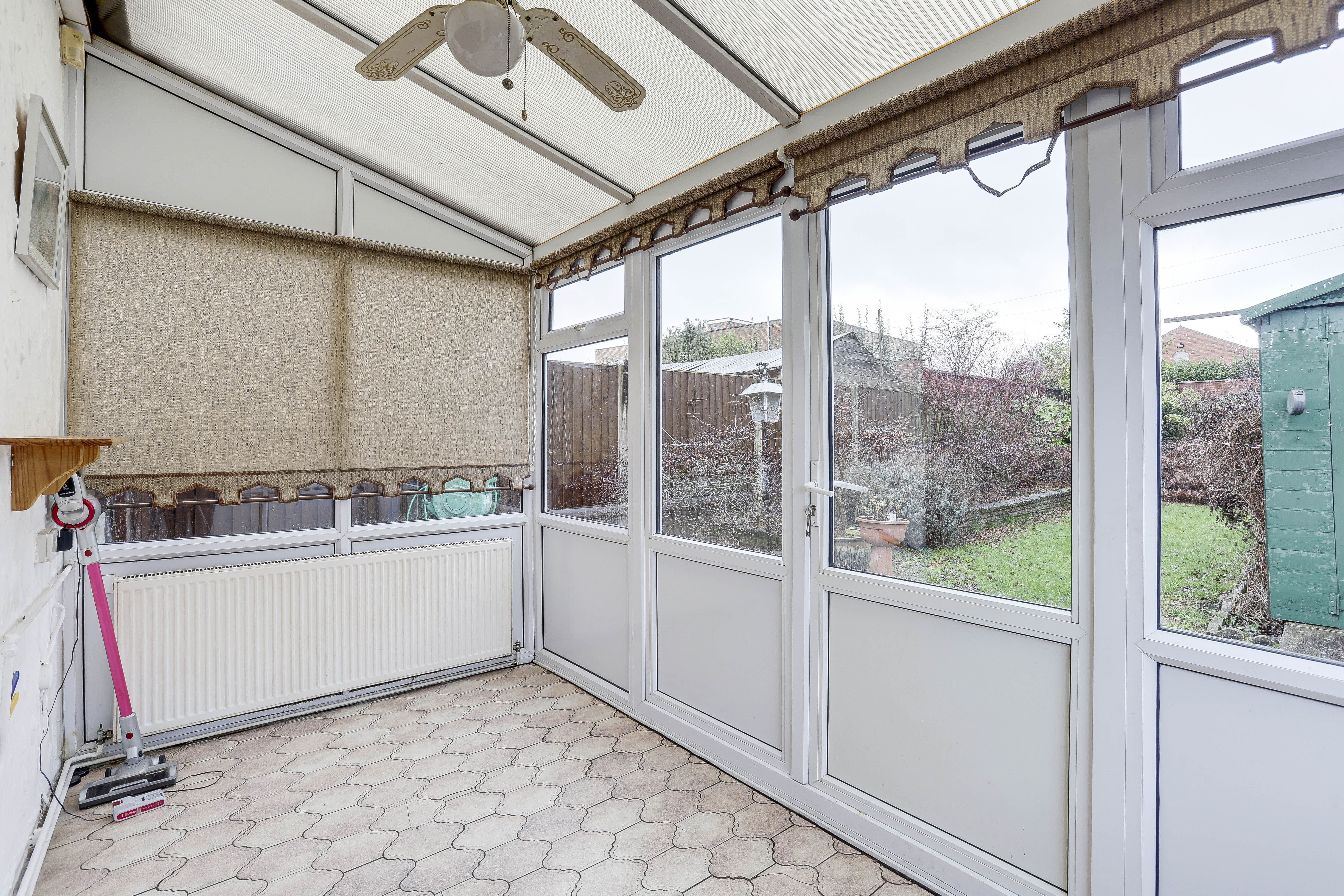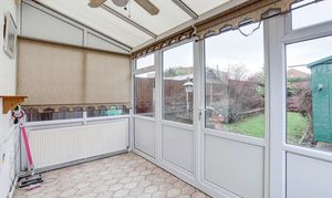The conservatory has UPVC double-glazed windows to the side and rear elevations, vinyl flooring, a radiator, a polycarbonate roof and a single UPVC door providing access out to the garden.