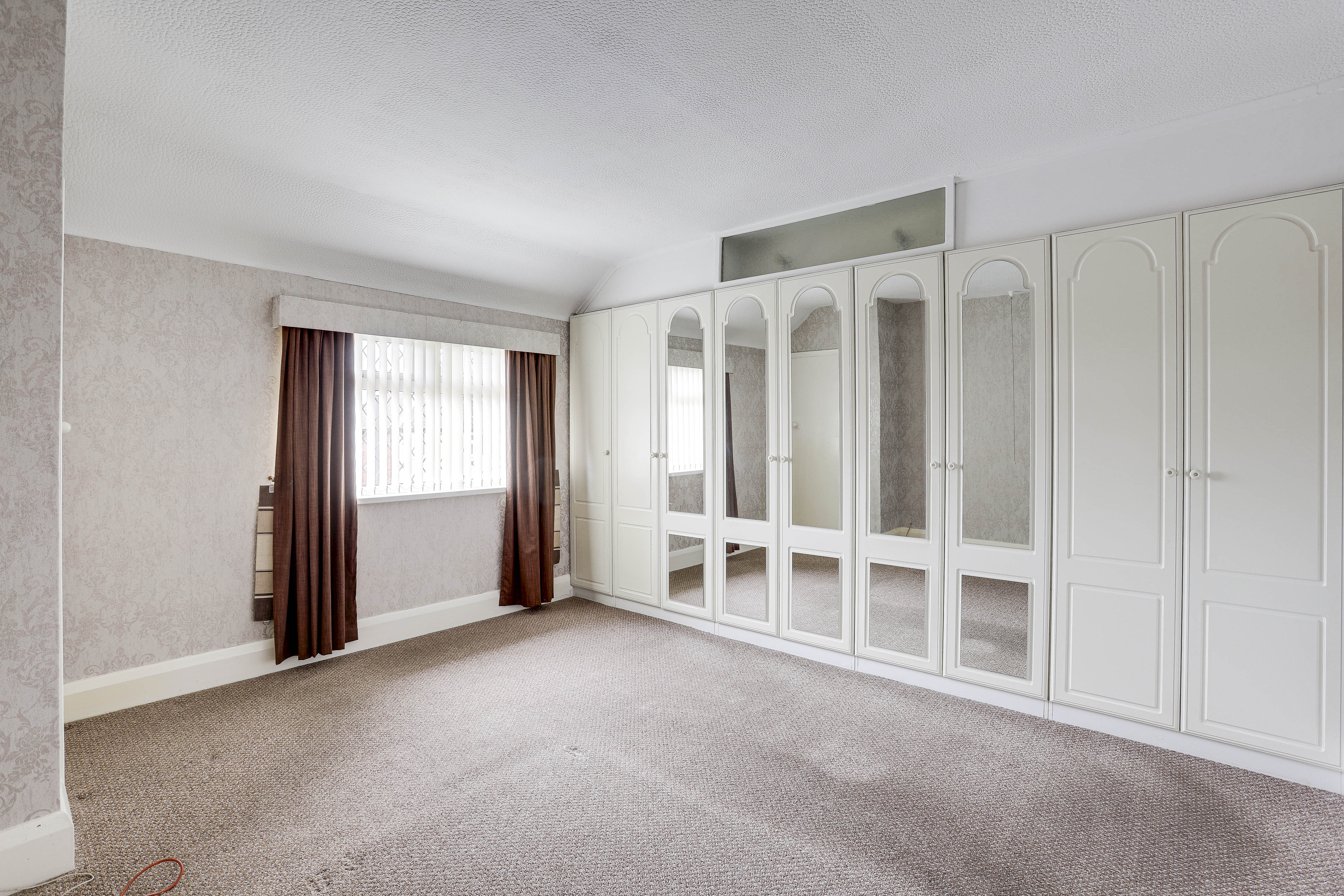 The main bedroom has a UPVC double-glazed window to the front elevation, carpeted flooring, a radiator, a built-in cupboard and built-in wardrobes with mirrors.
