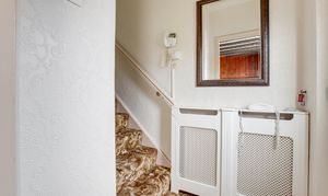 The entrance has carpeted flooring and stairs, a radiator and a single UPVC door providing access into the accommodation.