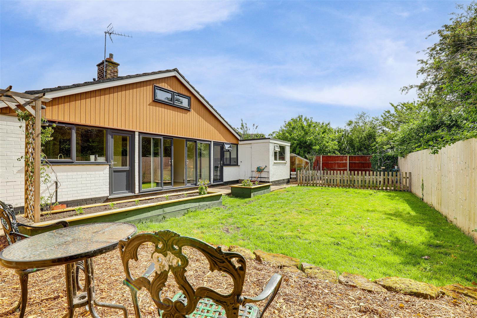 This beautifully presented four-bedroom detached bungalow is perfect for a wide range of buyers looking for a property ready to move straight into. Boasting a recently upgraded combi boiler, double-glazed windows and doors, new piping system with HIVE control, electrics, re-cladded exterior, new soffits and fascias, and an insulated loft. Situated in a popular location, it offers convenient access to shops, great schools, and fantastic transport links. The accommodation comprises a welcoming entrance hall, a spacious living room with sliding patio doors opening to the rear garden, and a modern Shaker-style fitted kitchen that seamlessly flows from the living space. The property further benefits from a stylish three-piece bathroom suite, four generously sized bedrooms, and access to a fully boarded loft, perfect for additional storage. Externally, the front of the property boasts a decorative stone garden, a driveway providing off-street parking, and a garage. To the rear, you’ll find a private south-facing garden, complete with a paved patio area, a well-maintained lawn, raised planters, and a greenhouse perfect for relaxing or entertaining. With its exceptional presentation and well-connected location, this bungalow offers the perfect blend of comfort and convenience ideal for modern living.