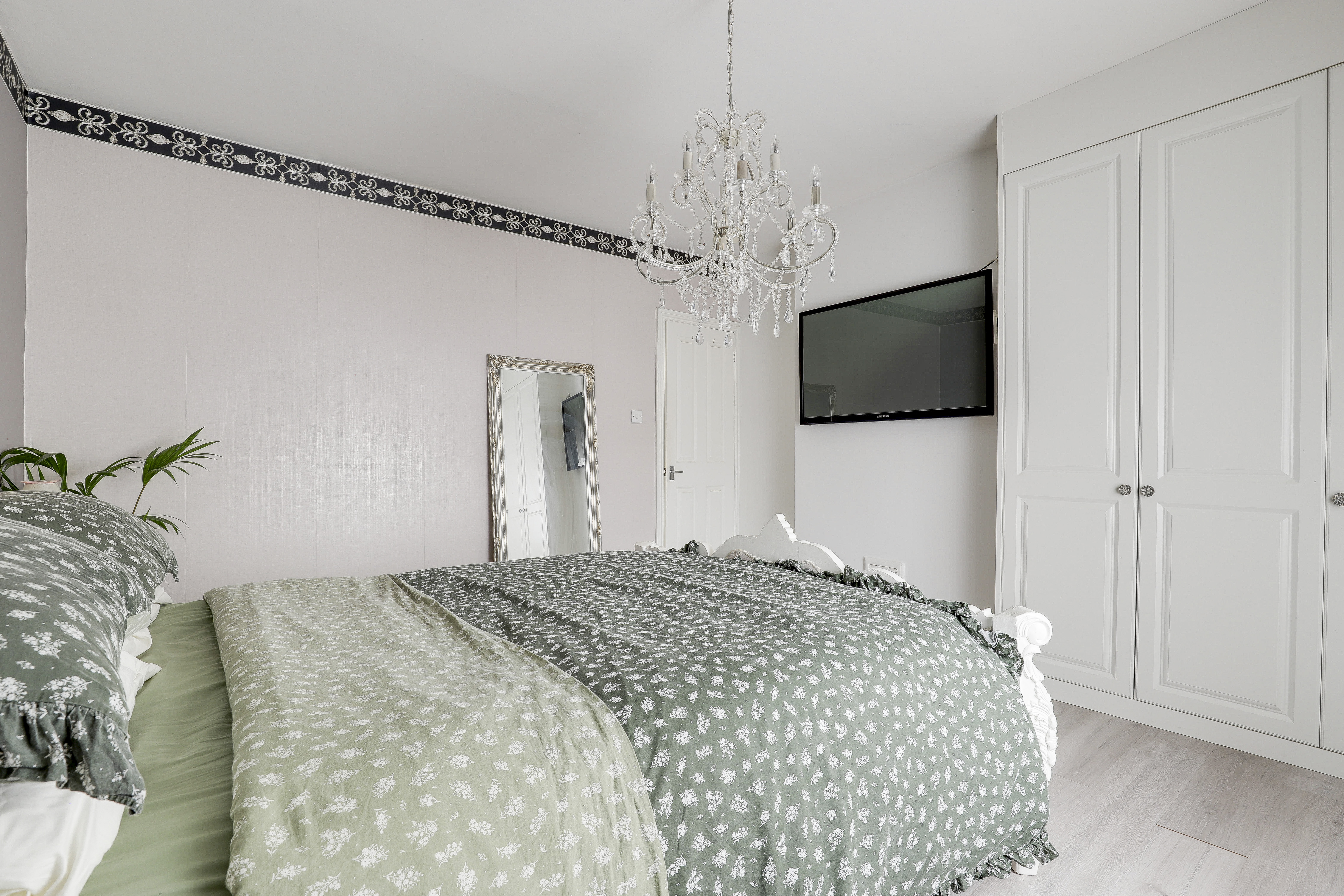 The main bedroom has a UPVC double glazed window to the front elevation, laminate flooring, fitted wardrobes and a radiator