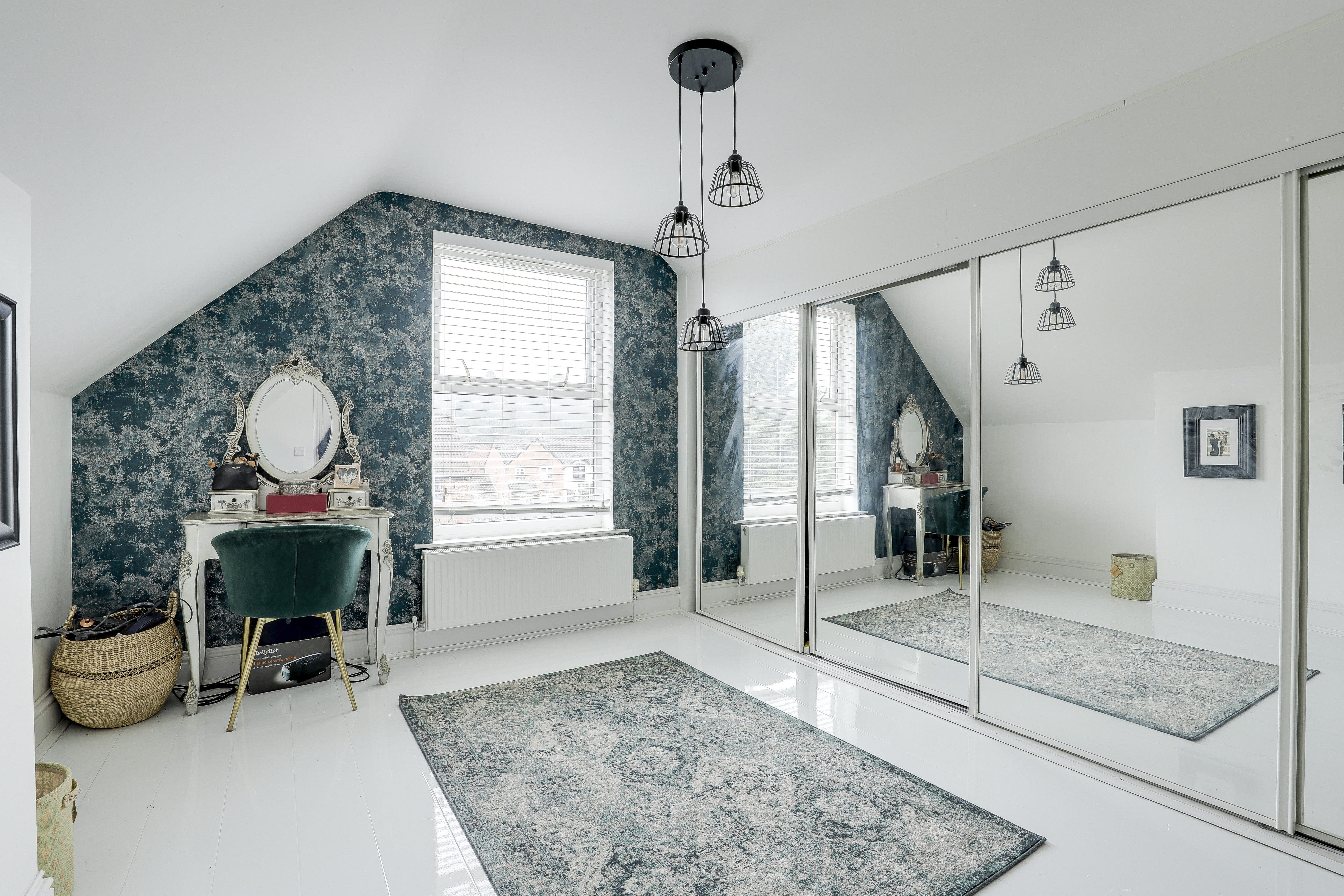 The fourth bedroom has a UPVC double glazed window to the front elevation, tiled flooring, a radiator and fitted sliding door wardrobes.