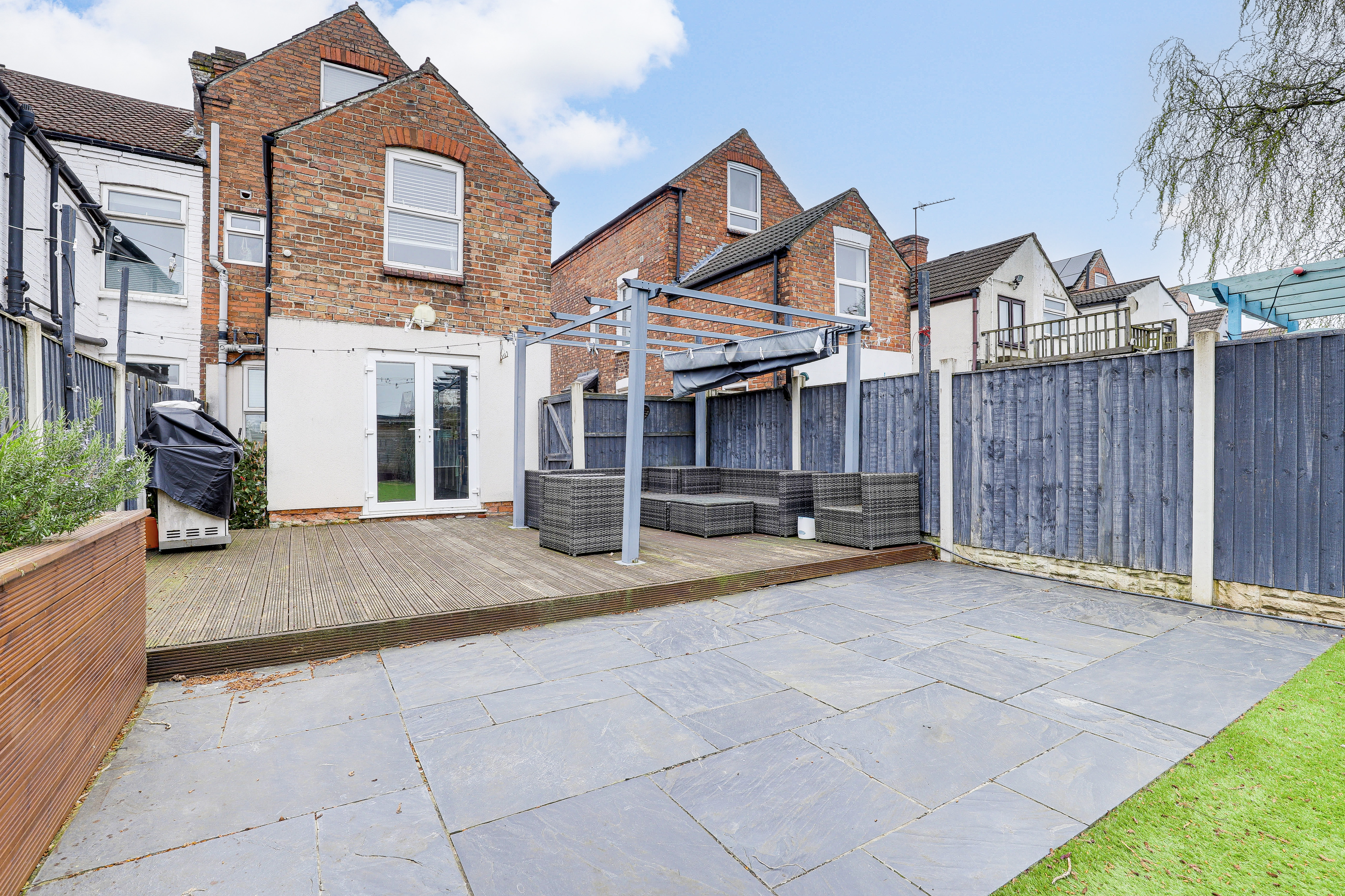 This beautifully presented end-terraced home offers the perfect blend of space, style and comfort, occupying a generous plot and spanning three well-proportioned floors. This property is ideally suited to a wide range of buyers seeking a move-in ready home in a well-connected location. Situated in a popular and convenient area, the property is just a short distance from excellent transport links including regular bus and train services, a variety of local amenities, and easy access into Nottingham City Centre. The ground floor boasts two inviting reception rooms, perfect for both relaxing and entertaining, alongside a contemporary fitted kitchen complete with double patio doors that open out onto a stylish decked seating area, creating a seamless indoor-outdoor living space. To the first floor, there are two generously sized bedrooms, both serviced by two modern bathroom suites, offering both practicality and comfort. The second floor hosts a further two spacious double bedrooms, making this an ideal home for growing families or those needing versatile space for home working. Externally, the property continues to impress. To the front, there is a shared driveway providing off-street parking for up to three vehicles, in addition to a private parking space and an electric vehicle charging point. Gated side access leads to a south-facing, low-maintenance rear garden, featuring a high-quality artificial lawn and enjoying plenty of sunlight throughout the day - perfect for outdoor dining and relaxation.