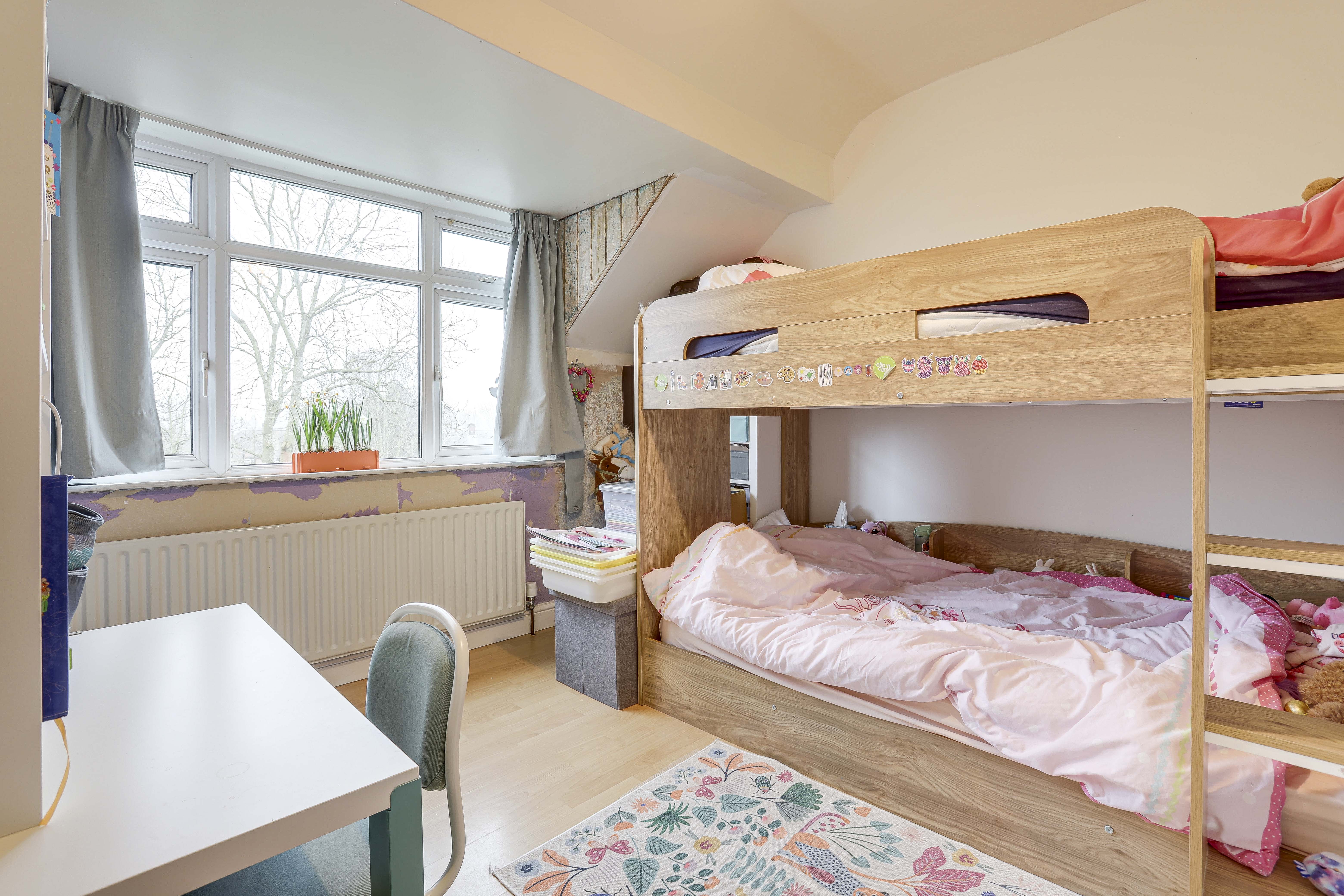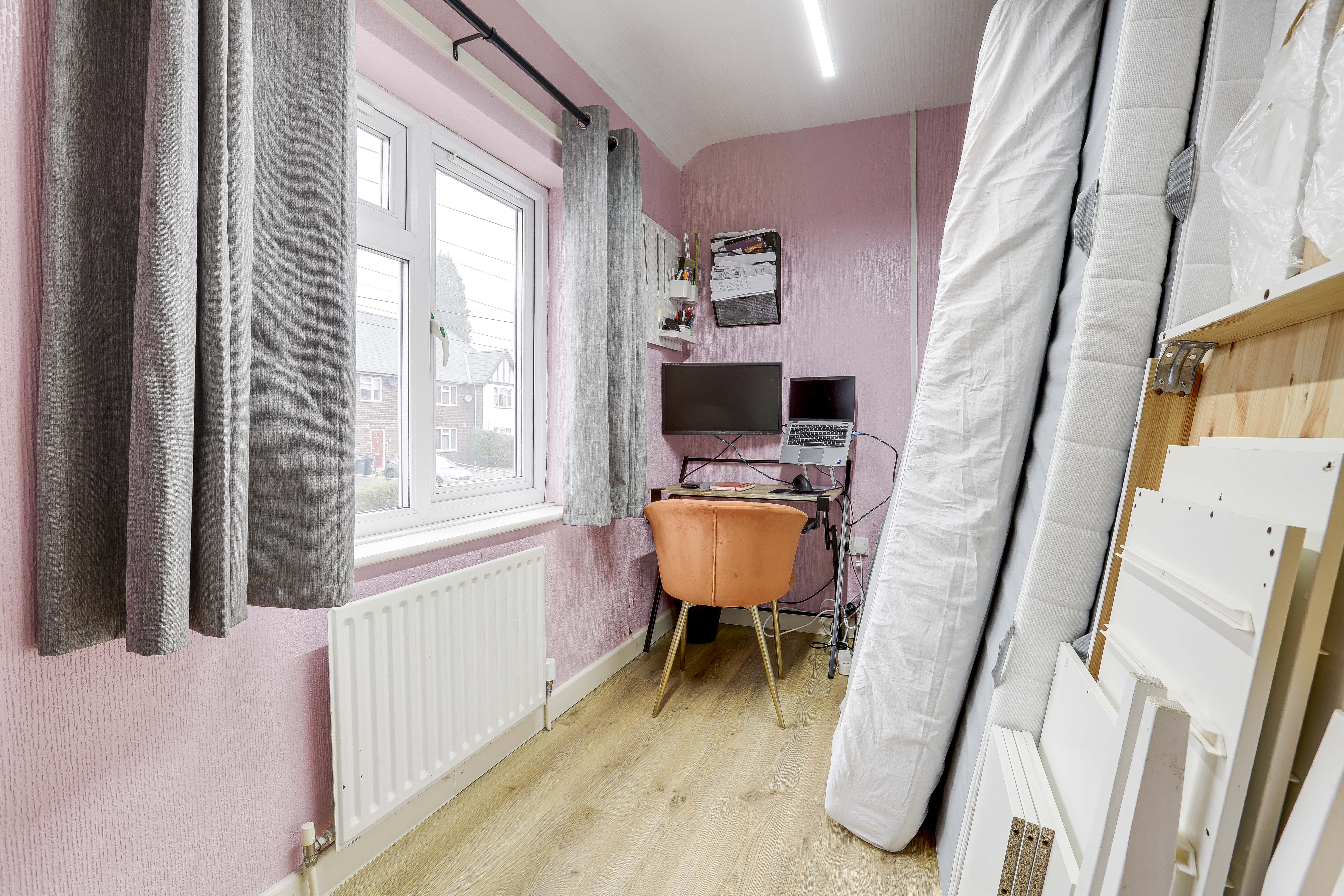 The third bedroom has a UPVC double-glazed window to the front elevation, a radiator, and wood-effect flooring.