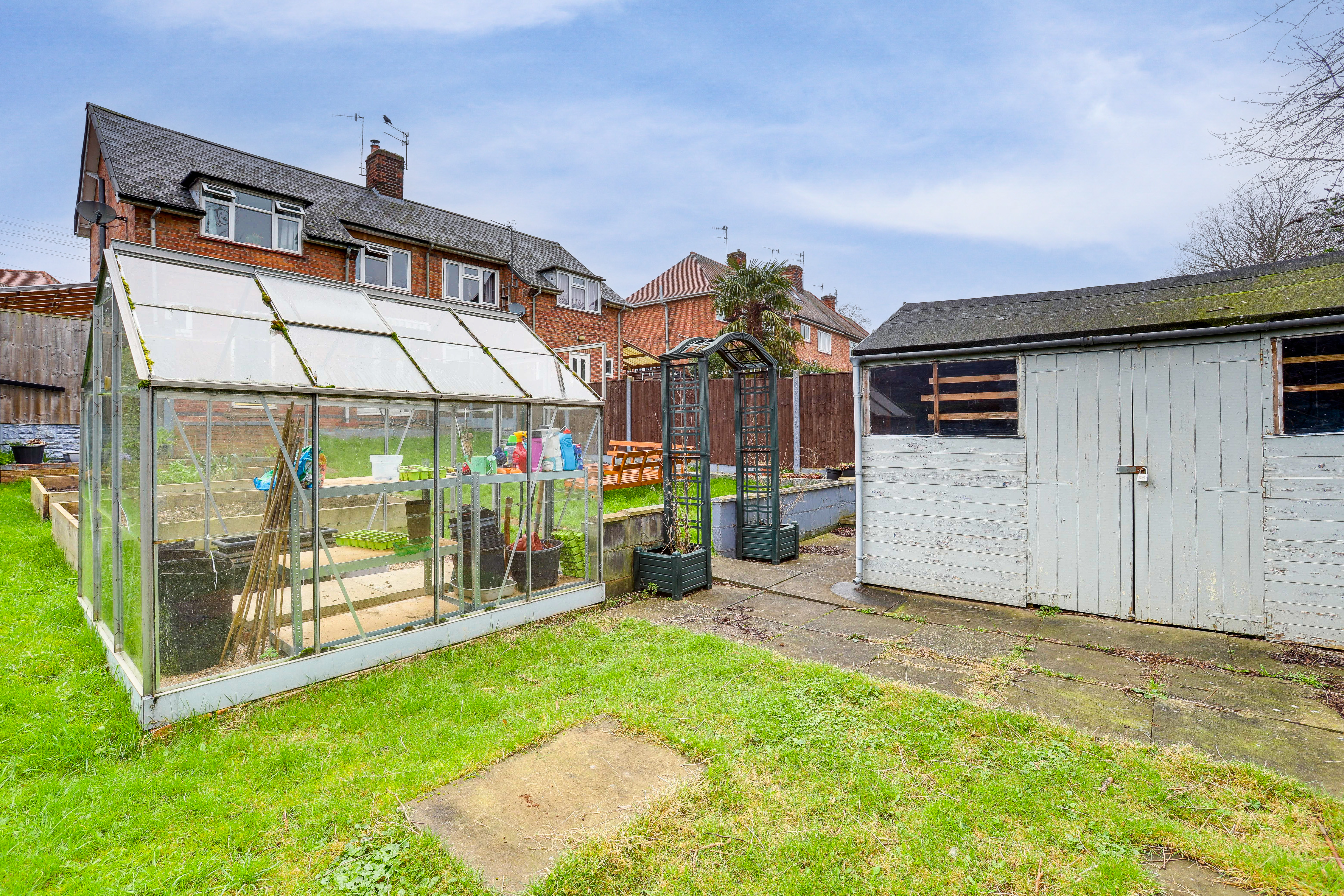 To the rear of the property is a private enclosed garden with a patio area, an outdoor tap, access to the lean-to, a lawn, a greenhouse, a shed, hedged borders and fence panelling