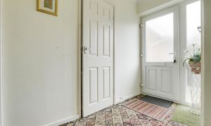 Dimensions: 2.20m x 2.59m (7'2" x 8'5"). The entrance hall has carpeted flooring, a radiator, an in-built cupboard, recessed spotlights, access into the loft, a radiator, and a UPVC door providing access into the accommodation.