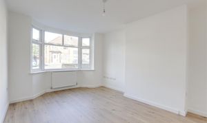 Dimensions: 4.55m x 3.45m (14'11" x 11'4"). The living room has laminate wood-effect flooring, a radiator and a UPVC double-glazed bay window to the front elevation.