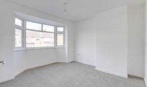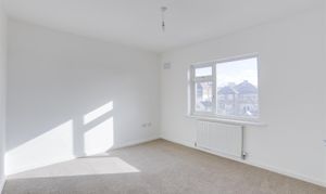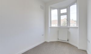 Dimensions: 2.84m x 1.96m (9'4" x 6'5"). The third bedroom has carpeted flooring, a radiator and a UPVC double-glazed bay window to the front elevation.