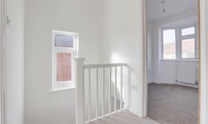 Dimensions: 2.29m x 1.71m (7'6" x 5'7"). The landing has carpeted flooring, a UPVC double-glazed obscure window to the side elevation, access to the loft and provides access to the first floor accommodation.