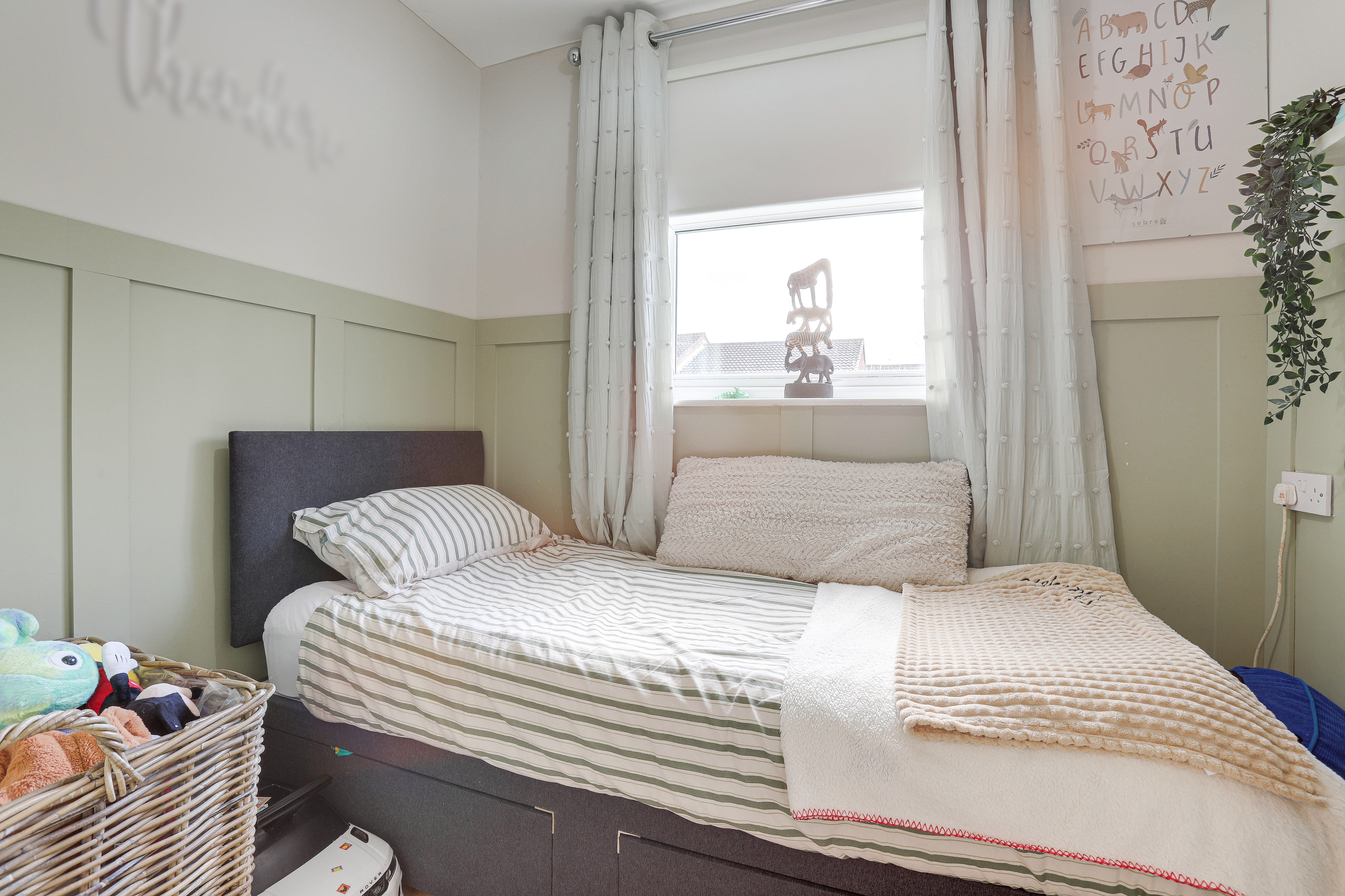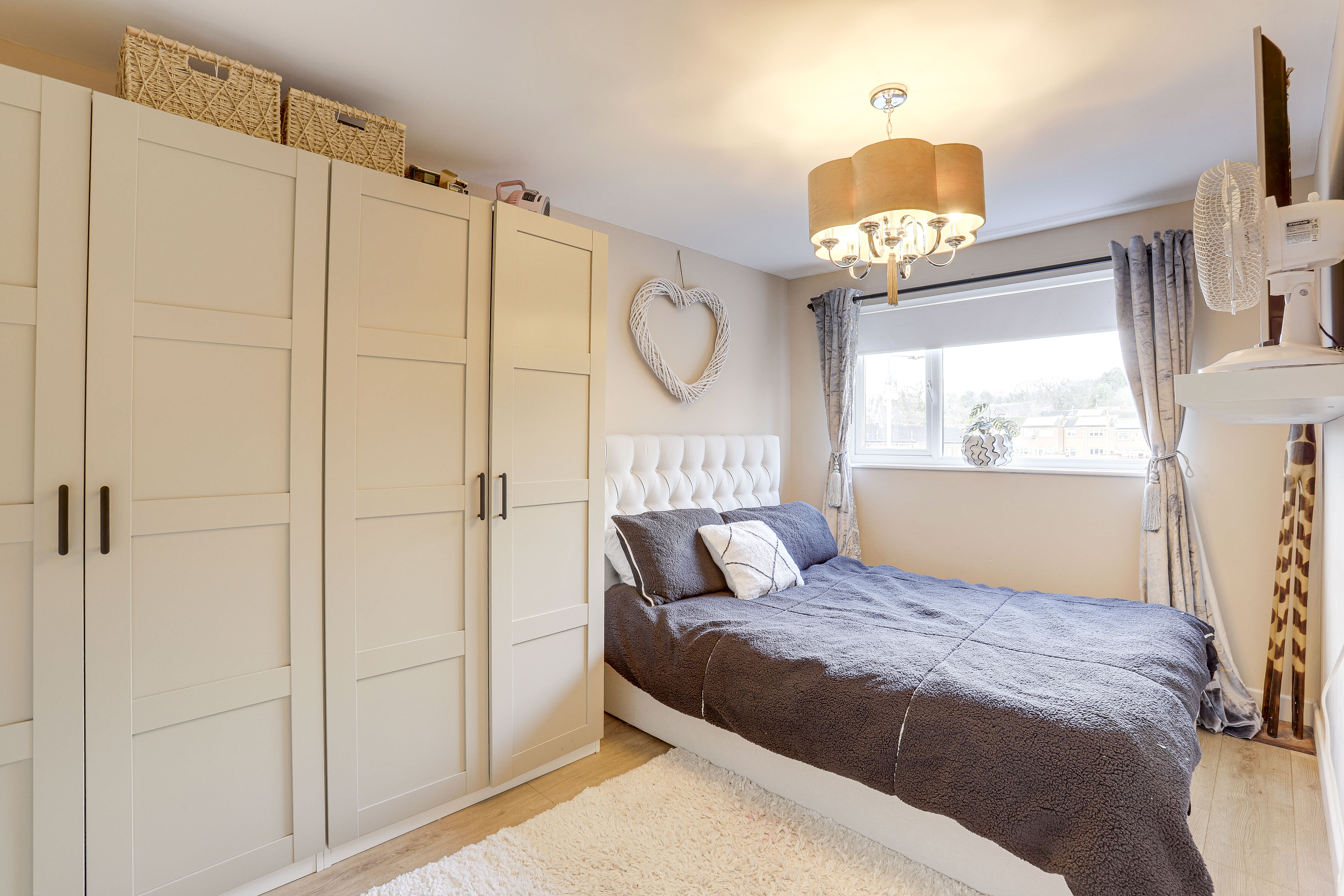 The third bedroom has a UPVC double-glazed window to the front elevation, wood-effect flooring, a radiator and panelled walls.