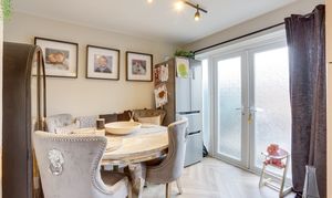 This well-presented end-terrace house would make the perfect purchase for a first-time buyer looking to move straight in. Situated in a convenient location, the property is within close proximity to a range of local shops, great schools and superb transport links. To the ground floor, the accommodation comprises an entrance hall, a living room featuring a media wall and a flame-effect electric fireplace, and a well-appointed shaker-style fitted kitchen diner. The kitchen offers ample storage and workspace and benefits from double French doors opening out to the rear garden. The first floor hosts three bedrooms, all serviced by a modern three-piece bathroom suite. Outside, to the front of the property is a south-facing garden with a lawn, while to the rear is a private garden featuring a decked wooden seating area, an artificial lawn, a shed, and fence-panelled boundaries. A single wooden gate provides convenient access to the on-street parking.