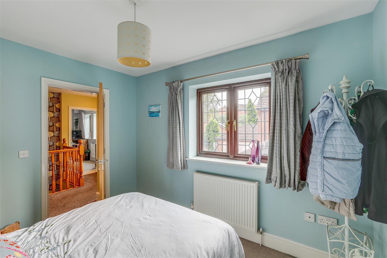 Dimensions: 3.29m x 2.76m (10'9" x 9'0" ). The fifth bedroom features carpeted flooring, a radiator, and a UPVC double-glazed window on the front elevation.
