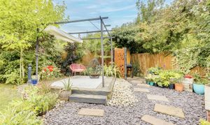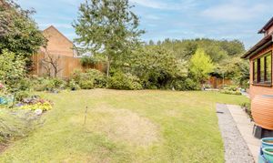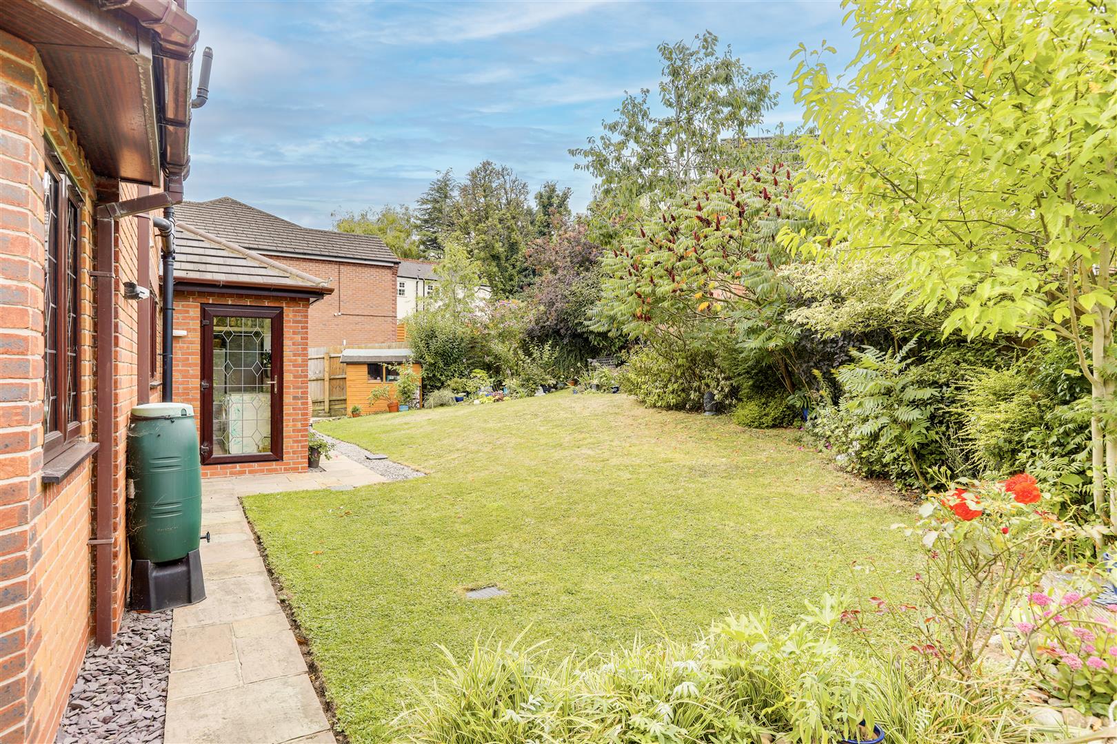 To the rear, the property benefits from an enclosed, private garden which wraps around the property featuring a well-maintained natural lawn, a variety of plants, shrubs, and mature trees, blue slate chippings, a decked area, a patio seating space, an outside tap and electrical socket, external lighting, and panelled fencing.