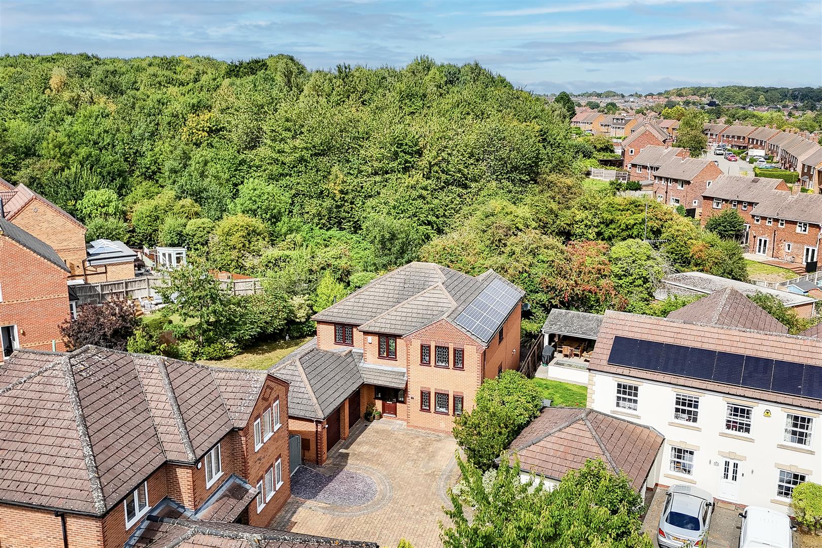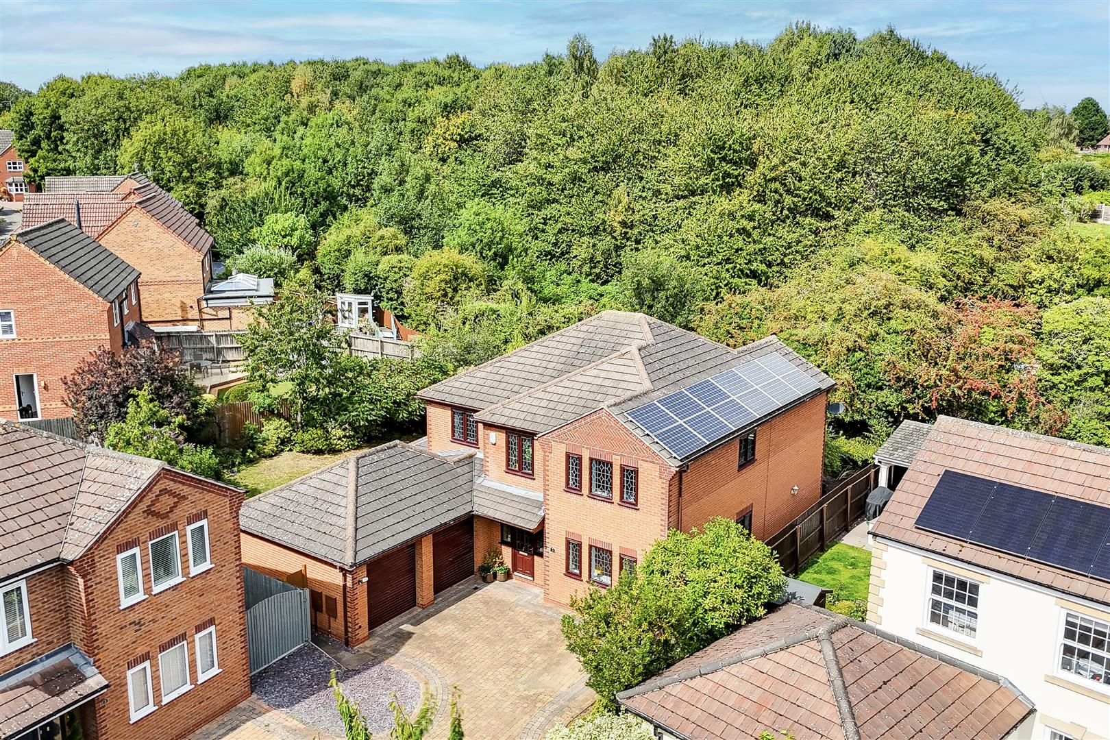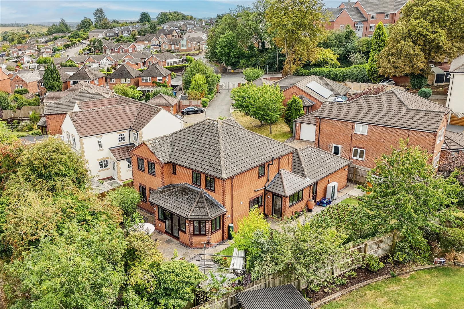 This generous detached five-bedroom home would make the perfect purchase for any growing family, offering an abundance of space both inside and out. Beautifully presented throughout, the property enjoys a versatile layout with multiple reception rooms, two en-suites, and a private rear garden, whilst being situated on a private road within an exclusive gated development of just six houses. Benefiting from an air source heat pump system, this home effortlessly combines modern efficiency with comfort and style. To the ground floor, the accommodation comprises an inviting entrance hall, a versatile study, a separate dining room, and a bright and spacious living room that flows into a sun room – perfect for year-round entertaining. The modern fitted kitchen is equipped with a range of SMEG integrated appliances and is complemented by a useful utility room and a ground floor W/C. Upstairs, the first floor hosts five well-proportioned double bedrooms, two of which are serviced by their own stylish en-suite, along with a contemporary four-piece family bathroom suite. Outside, the property is set within a well-maintained gated complex and boasts a block-paved driveway with space for multiple vehicles, subtle courtesy lighting, mature shrubs, and access to a double garage. To the rear, you will find a beautifully landscaped, enclosed garden with a lush lawn, a variety of plants, shrubs and mature trees, blue slate chippings, a decked area, patio seating space, external lighting, an outdoor tap, and secure panelled fencing – providing the perfect spot for relaxing and entertaining. This property is ideally located within close proximity to a range of local shops, amenities, and schools, whilst also benefiting from excellent transport links including easy access to the M1 and A52.