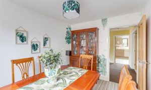 Dimensions: 3.30m x 2.64m (10'9" x 8'7" ). The dining room features carpeted flooring with underfloor heating and a UPVC double-glazed window on the side elevation.