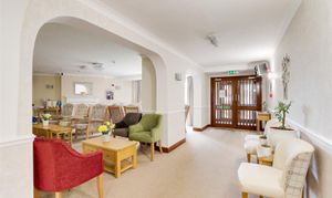 Dimensions: 2.33m x 2.14m (7'7" x 7'0"). The entrance hall has carpeted flooring, a built-in cupboard, an assistance pull-cord, coving to the ceiling, and a single door leading into the accommodation.