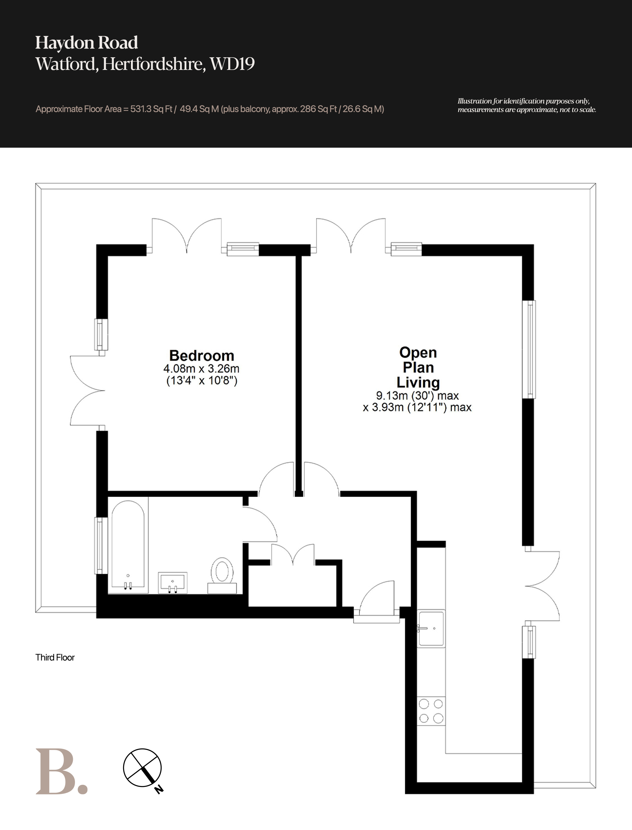 - Approx Sq Feet: 531 sqft