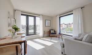 Set on the third floor of The Vault, a contemporary building completed in 2020, this beautifully proportioned one-bedroom apartment is defined by light, outlook and a strong sense of space. Dual-aspect glazing features throughout, drawing in natural light from morning through to evening, while a private wrap-around balcony provides far-reaching, 180-degree views across the surrounding neighbourhood. The apartment is ideally positioned within easy walking distance of Bushey Station, offering direct connections into Central London, and moments from a curated mix of independent cafés, bars and restaurants, all framed by nearby green spaces.