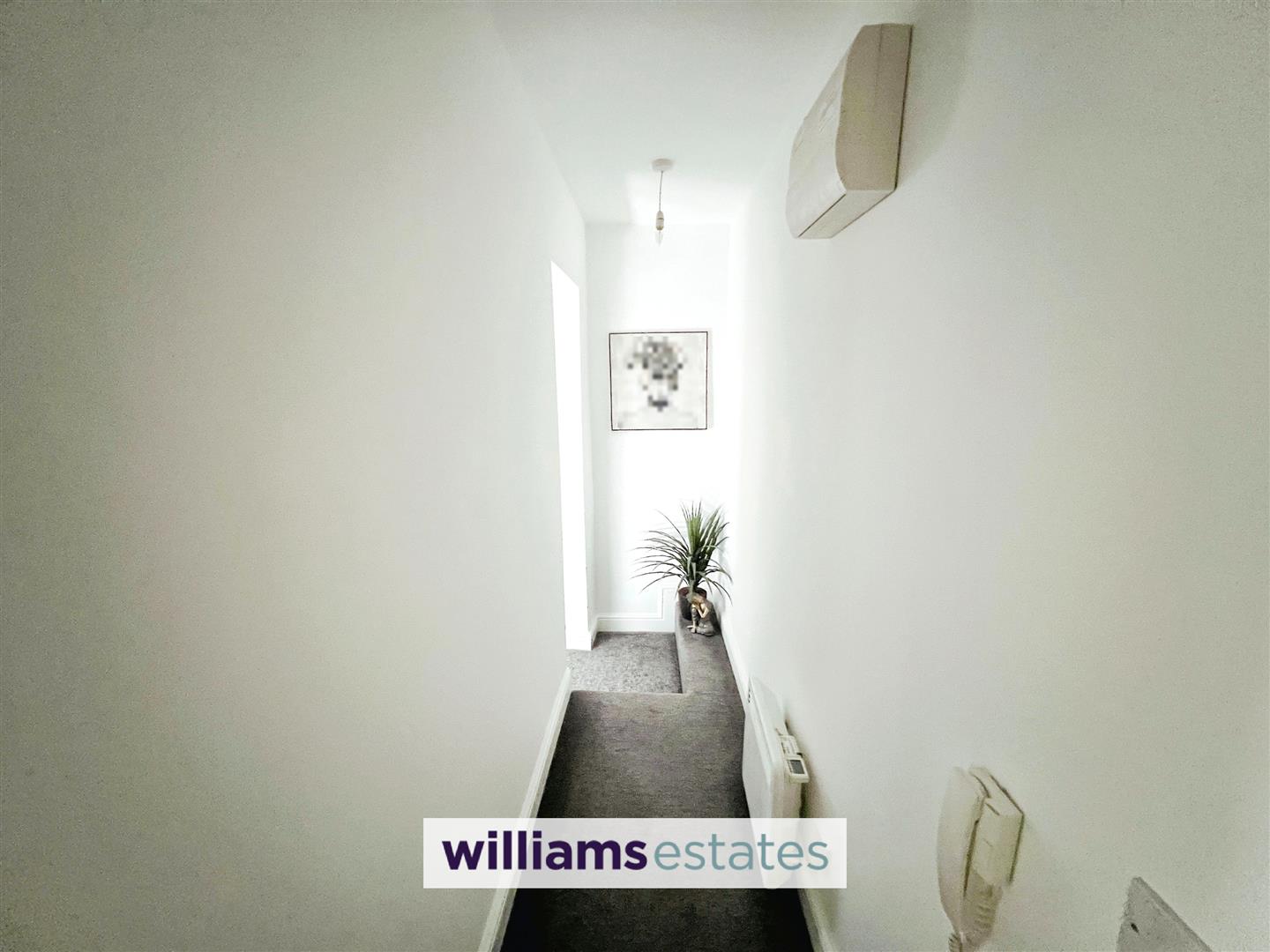 Entrance hallway with doors off: electric radiators, lighting and consumer unit.