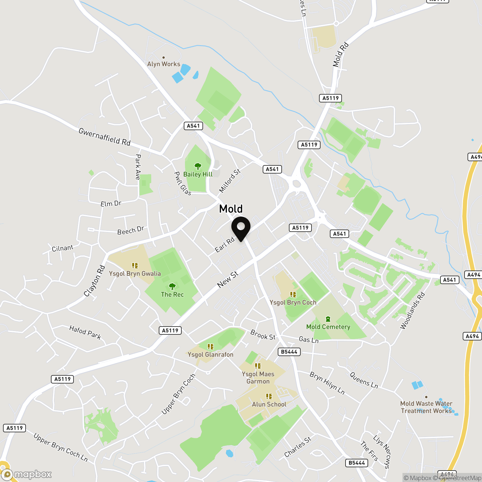 Take a left out of our Mold office, take a right at the traffic lights and follow along until WHSmith where the flat is located just to the right.