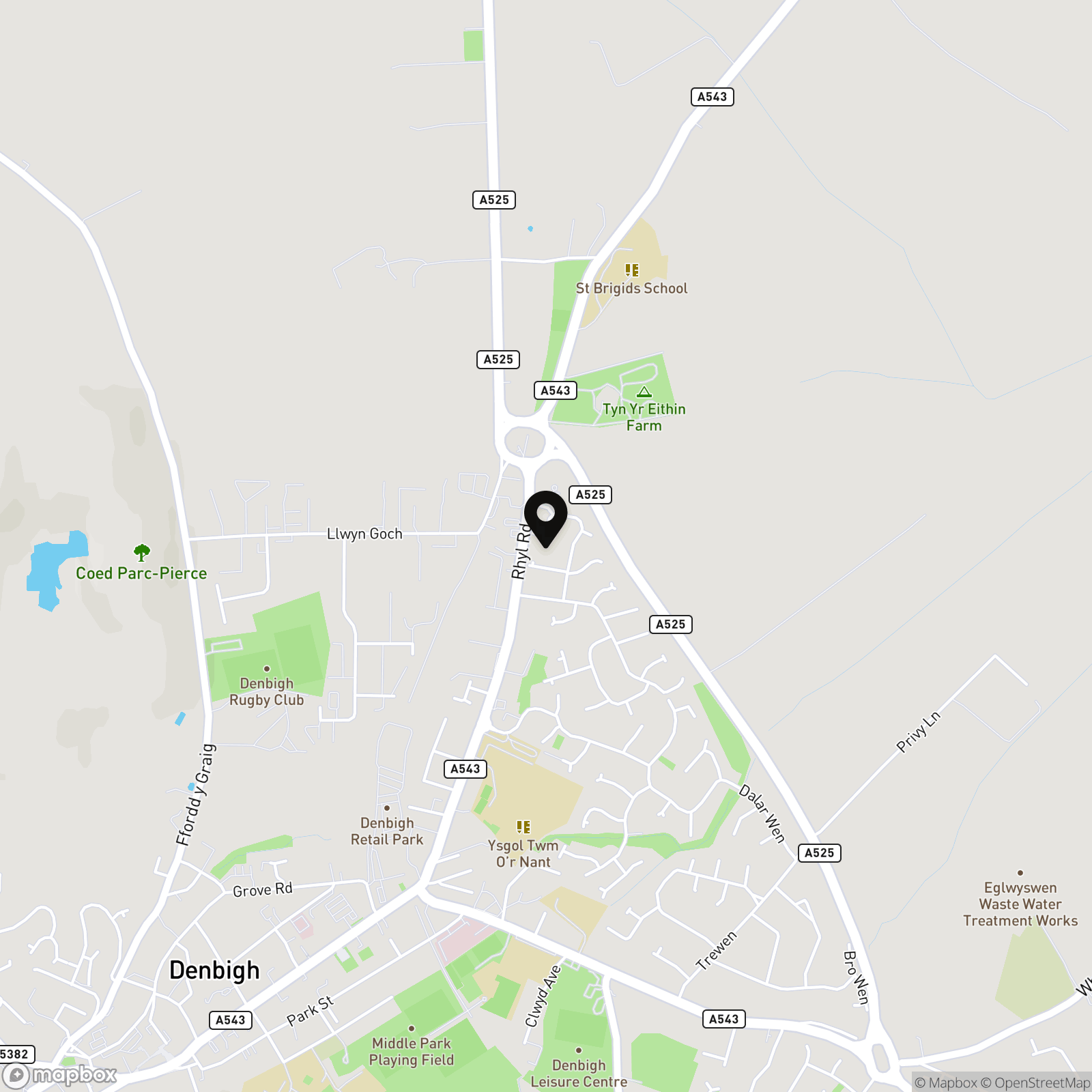 From our Denbigh office, Crown Lane, Denbigh (LL16 3AA) Turn left onto Hall Square and continue along the A543 for approximately 0.8 miles. Turn right onto Ffordd Colomendy, then after a short distance (about 325 ft), turn left onto Ffordd Celyn. Continue for 0.1 miles before making a final left turn to remain on Ffordd Celyn.