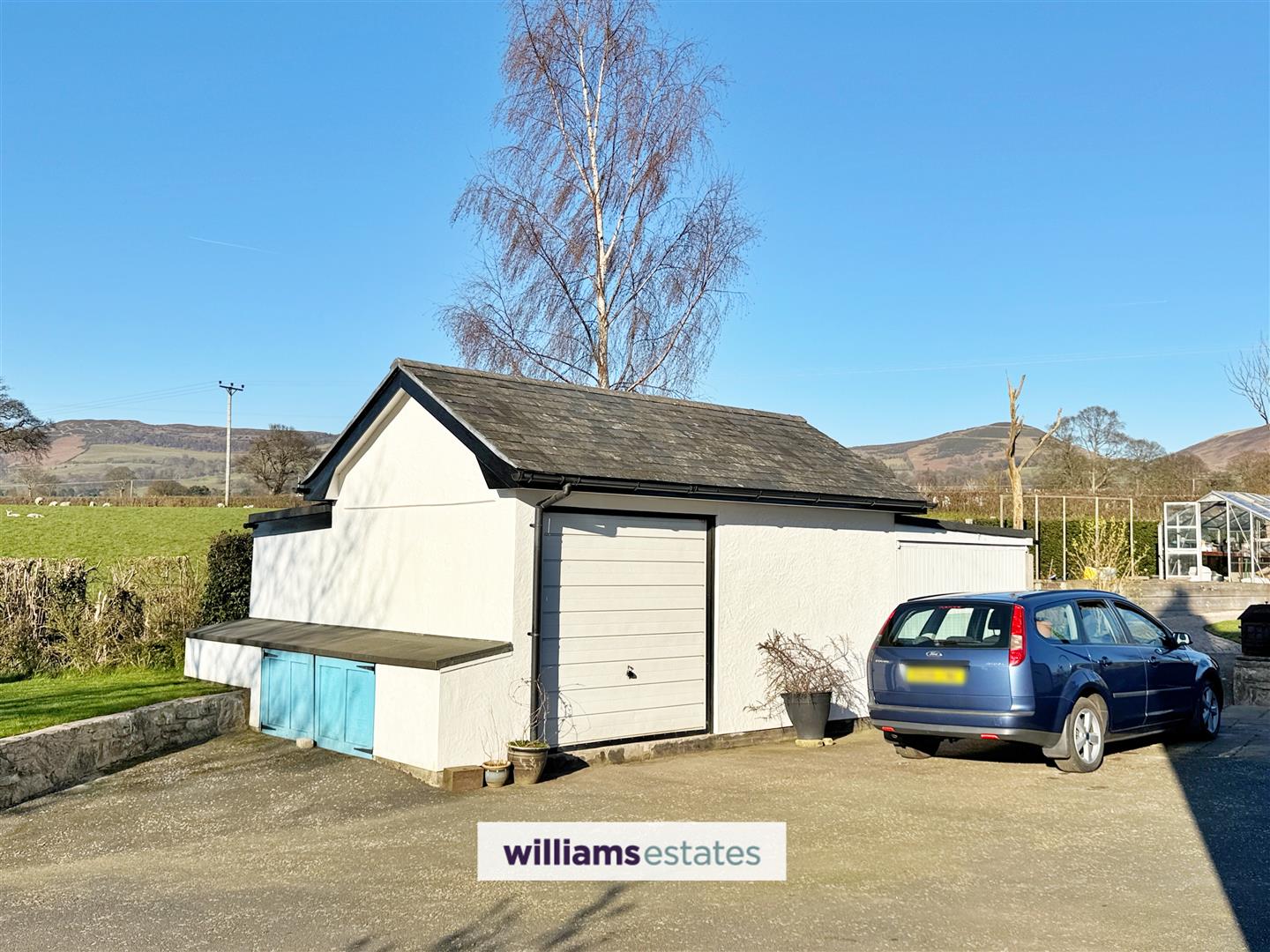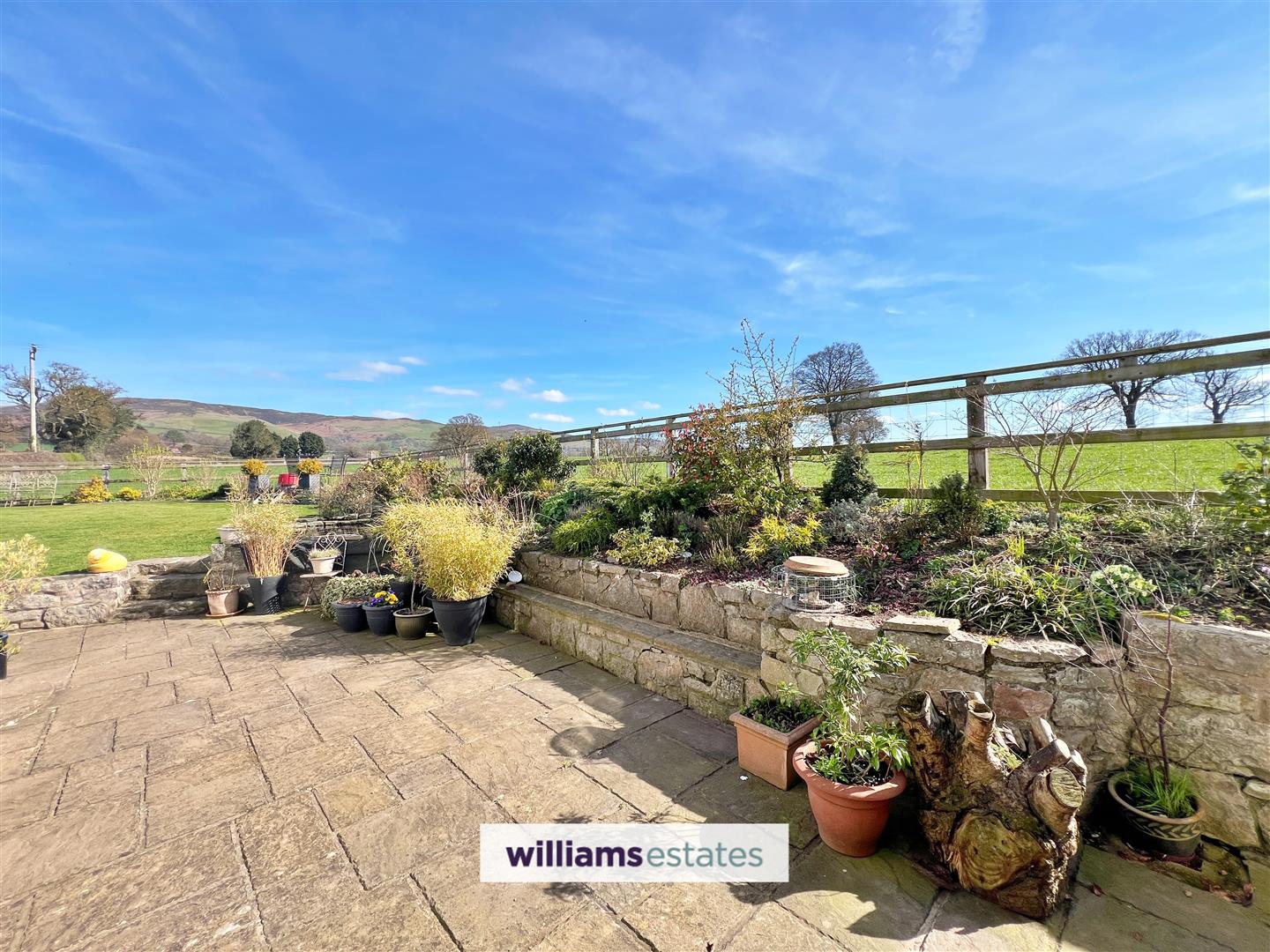 The property is approached via a tarmacadam driveway providing ample off road parking, detached garage, lawn gardens to the side, raised planters, greenhouse. The side garden has a paved patio and mixed borders. The rear garden has a paved patio, lawn area, mixed borders, fish pond and stunning views around.