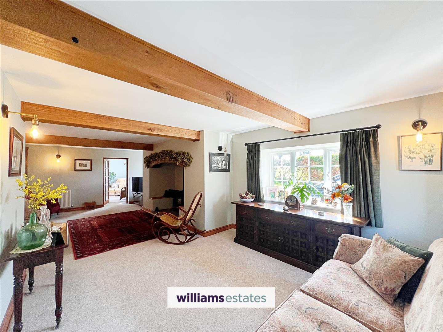Dimensions: 8.7m x 4.34 (28'6" x 14'2"). Having a feature inglenook fireplace with mains gas fired log effect burner on a stone hearth, oak feature beams, radiators, power points, double glazed windows to front and rear elevations.