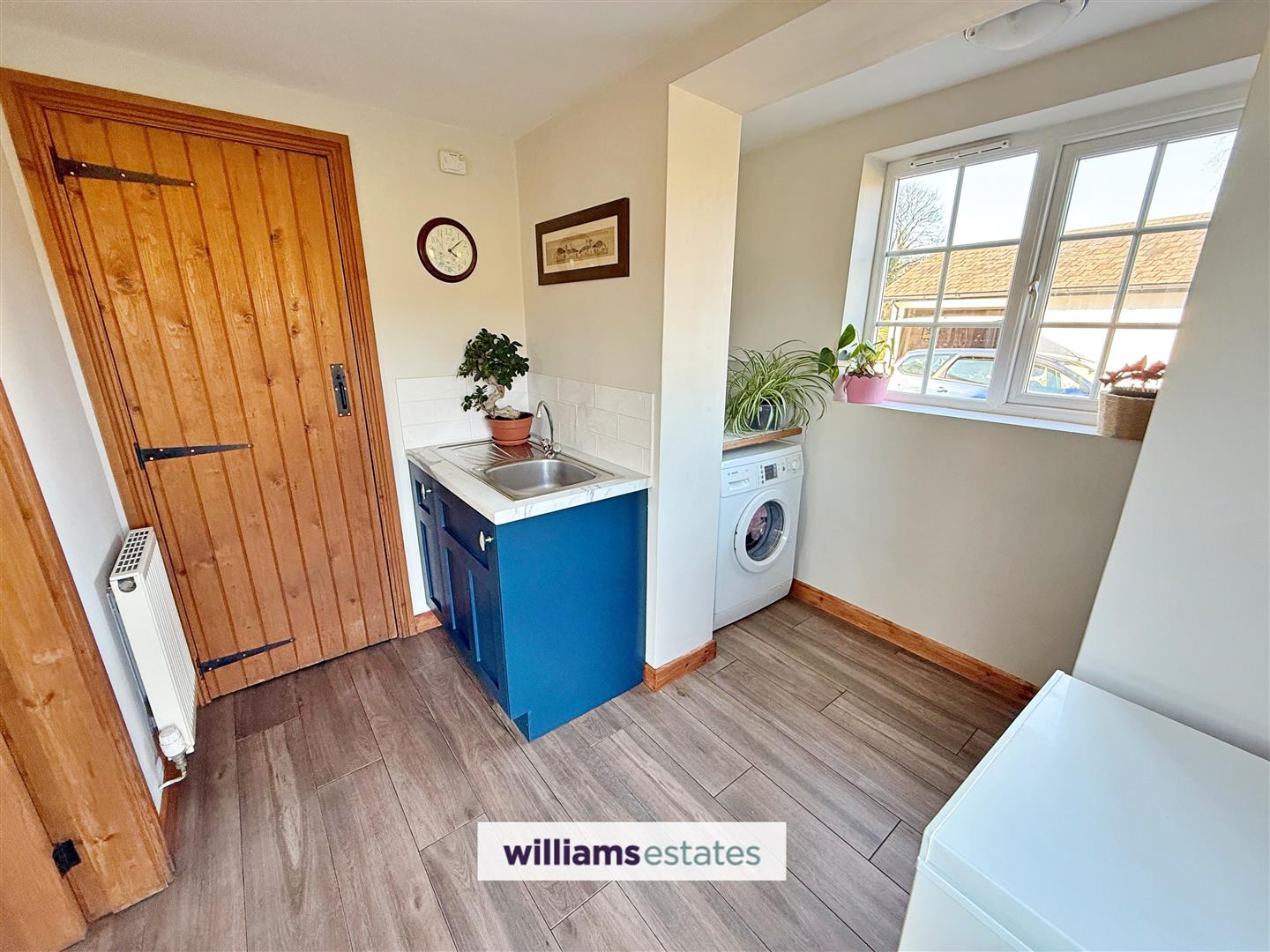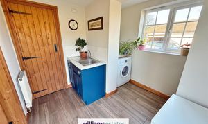 Dimensions: 2.9 x 2.6 (9'6" x 8'6"). Matching base units to the kitchen and work surfaces over, stainless steel sink, plumbing for washing machine, space for freezer, pantry with shelving, cupboard housing the 'Ideal' mains gas combination boiler.