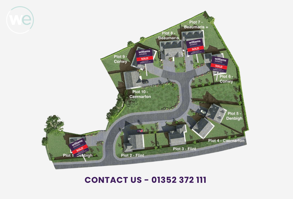 From the Williams Estates Mold office, head south-west on Chester St/A5119 towards High St/B5444. At Gwernymynydd Roundabout, take the 2nd exit onto A494. From here continue for just under one mile abd take a right turn and the development can be found on the right hand side.