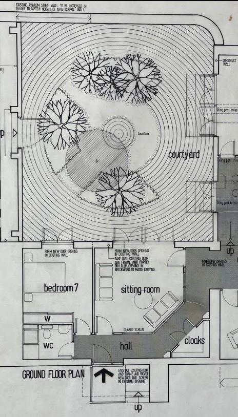 The barn has been designed around a central courtyard to provide a focal point for the ground floor plan and to provide a natural circulation route in fine weather between most the ground floor rooms and also to provide a tranquil, sheltered and totally secluded area. Whilst the screen wall has yet to be built to fully enclose this area the original plan for the courtyard and the elevation of the screen wall are included within these particulars for information and to assist potential purchasers in visualising how the space could be further developed. The field has a main water supply and a good-sized flat riding / schooling area which may be beneficial to a potential purchaser with equestrian interests.