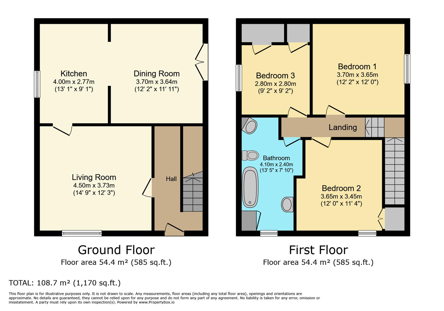 Dimensions: 4.1 x 2.4 (13'5" x 7'10" ). Double ended bath, wash basin, W/C, corner shower enclosure with Mira shower, chrome heated towel rail, cylinder cupboard with shelving, UPVC double glazed window to the front.