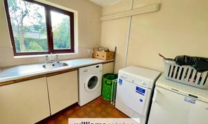 Dimensions: 2.41m x 2.18m (7'11" x 7'2"). A good size utility with base units and work surface over, stainless steel sink, plumbing for washing machine and dryer, space for fridge/freezer, power points, continued tiled flooring from the kitchen and double glazed window to the rear.