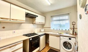 This is situated adjacent to the living room and has a PVCU double glazed window looking out over the front garden, there is a ceiling light point, central heating radiator, chimney breast, laminate flooring and fitting with a range of wall and base cupboards, draws, worktops with tile-splashbacks, four ring gas hob with extractor hood over and electric oven beneath, with under counter space for washing machine and fridge.