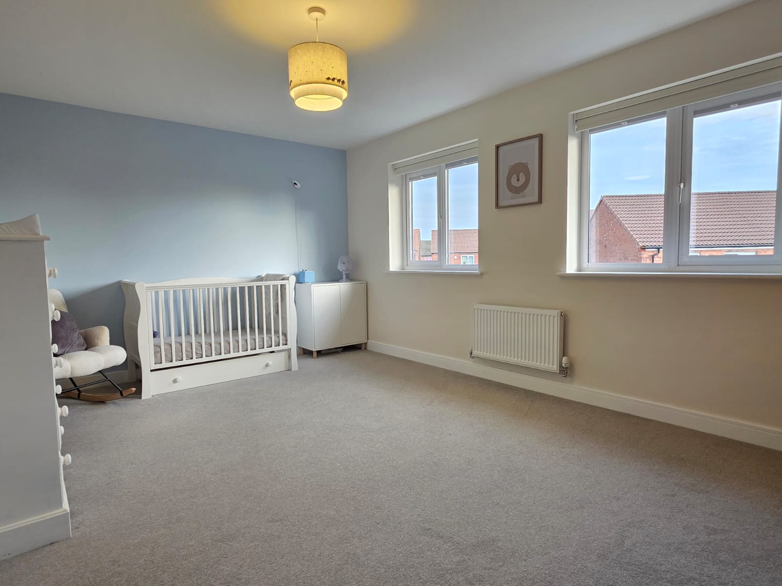 This expansive second bedroom has carpet flooring, two UPVC double glazed window and radiator.
