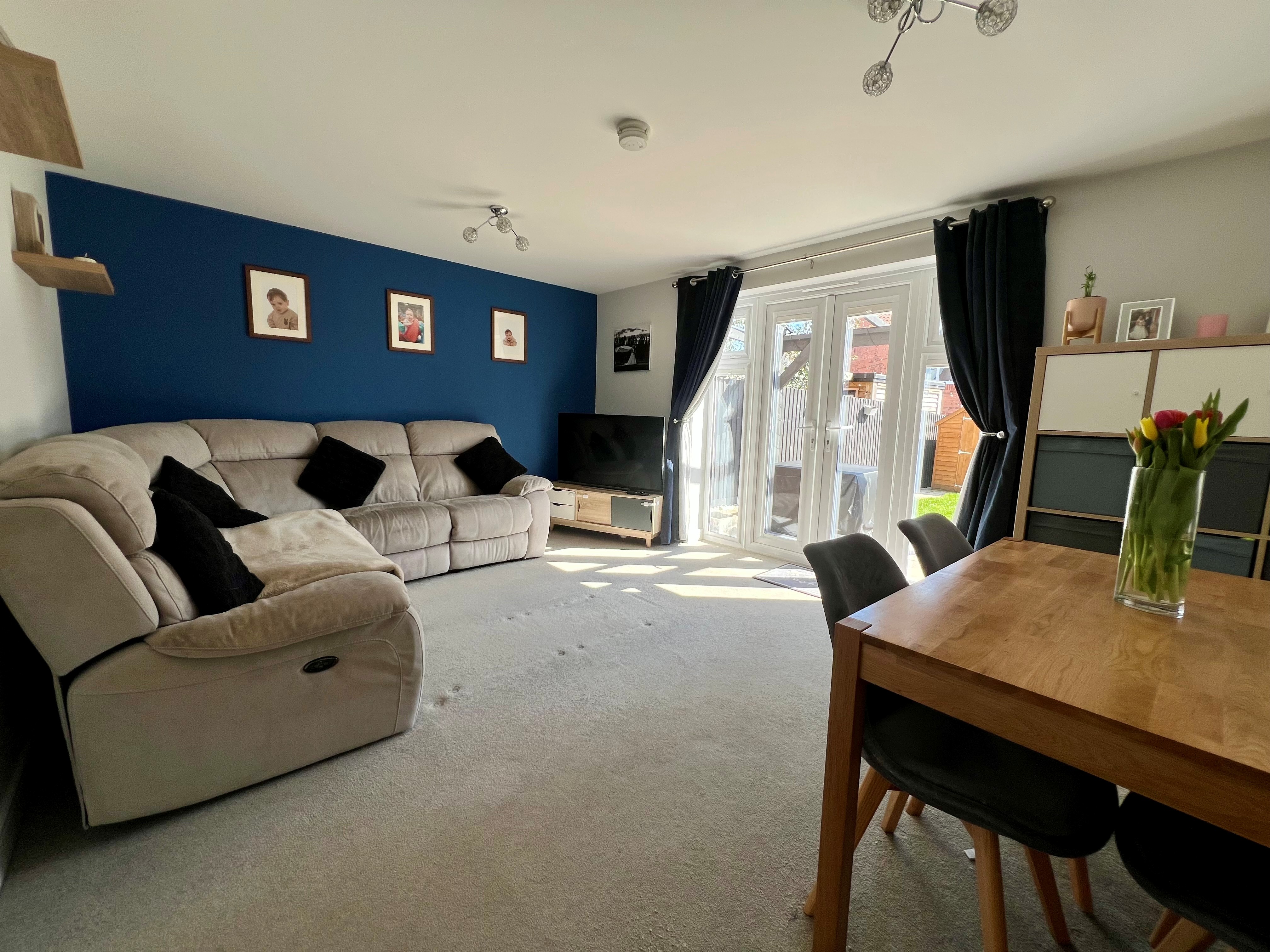 Currently being utilised as Lounge/Diner, this space includes carpet flooring, TV connectivity, radiator and UPVC double glazed French doors out to the rear garden.